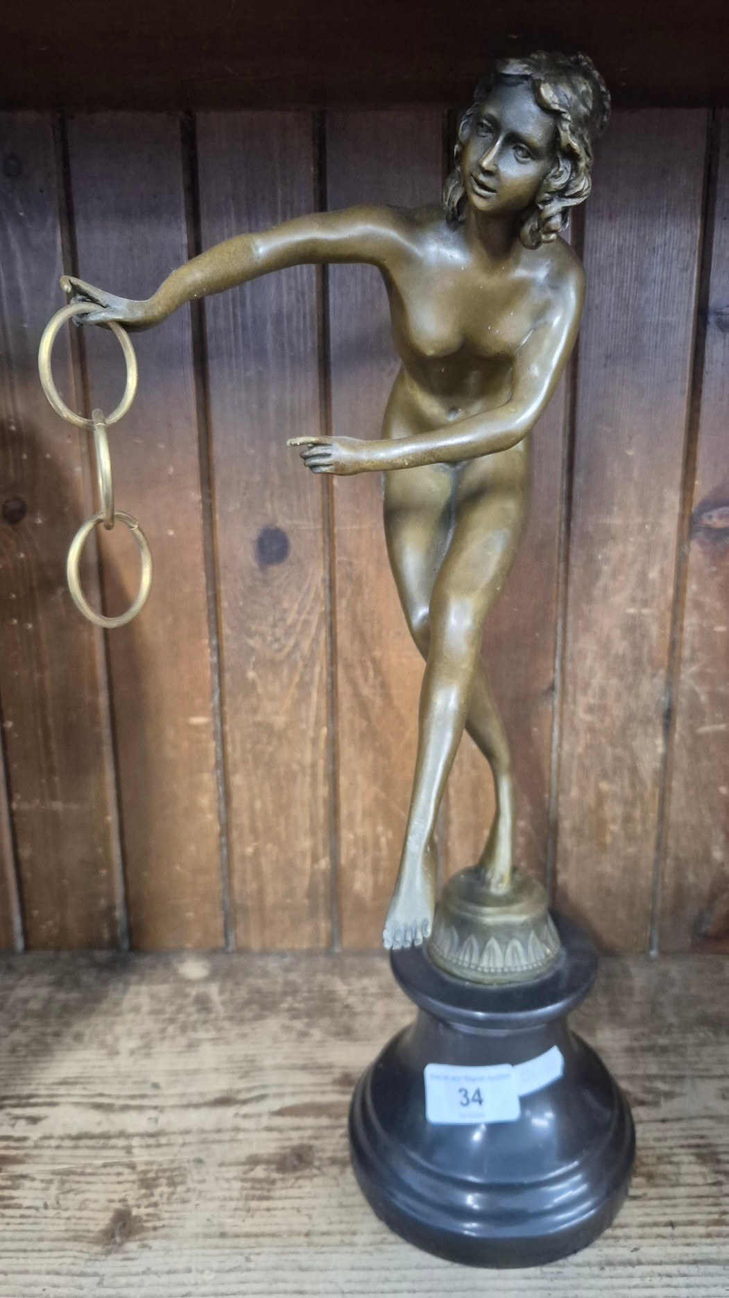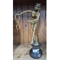 A modern bronze depicting a female nude dancer, on marble base, height 44cm.