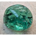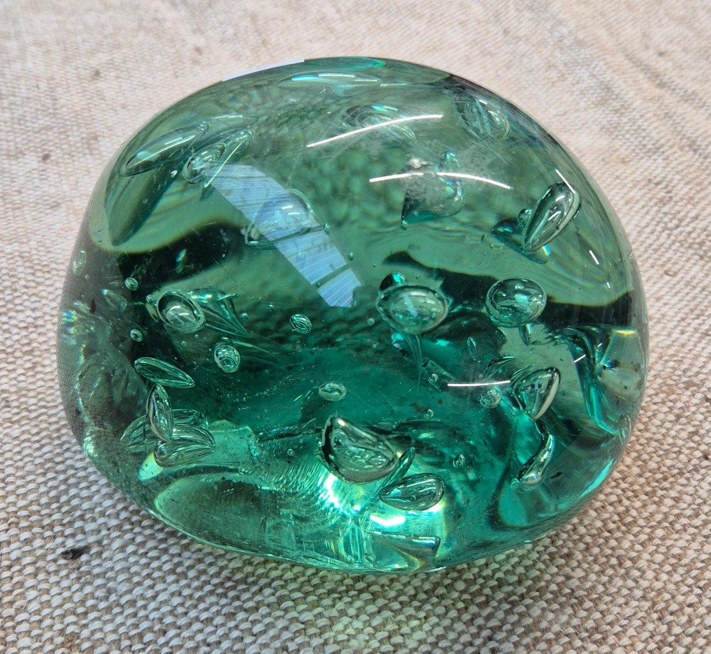 A green glass door stop