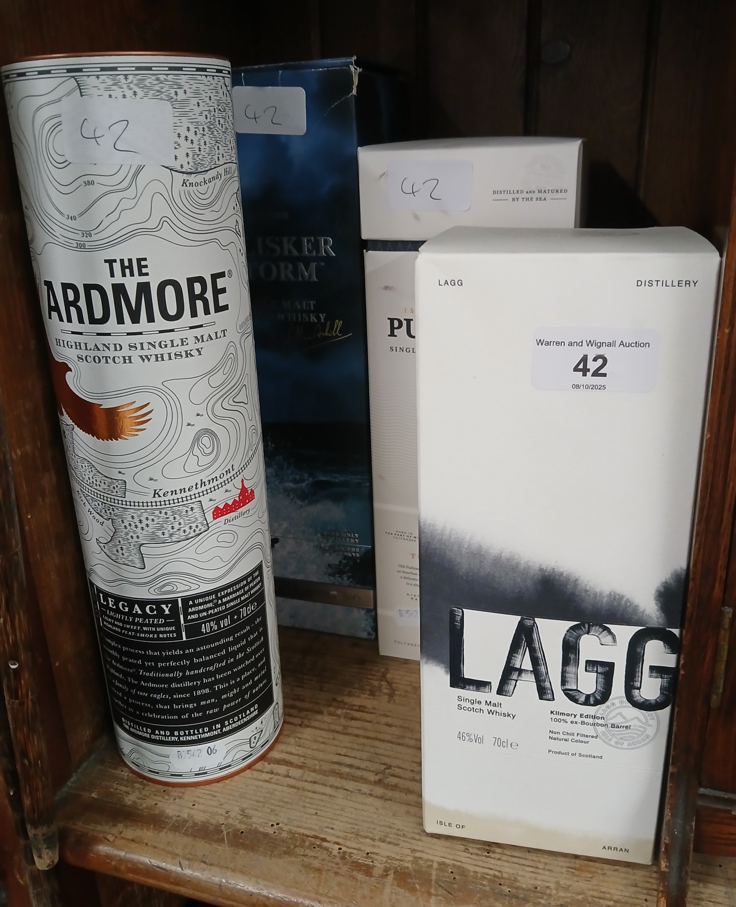 Four bottles of assorted single malt scotch whisky comrising of a Lagg, Ardmore, Old Pultney & Talsiker Storm.