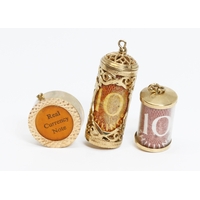 A group of three hallmarked 9ct gold bank note charms, gross...