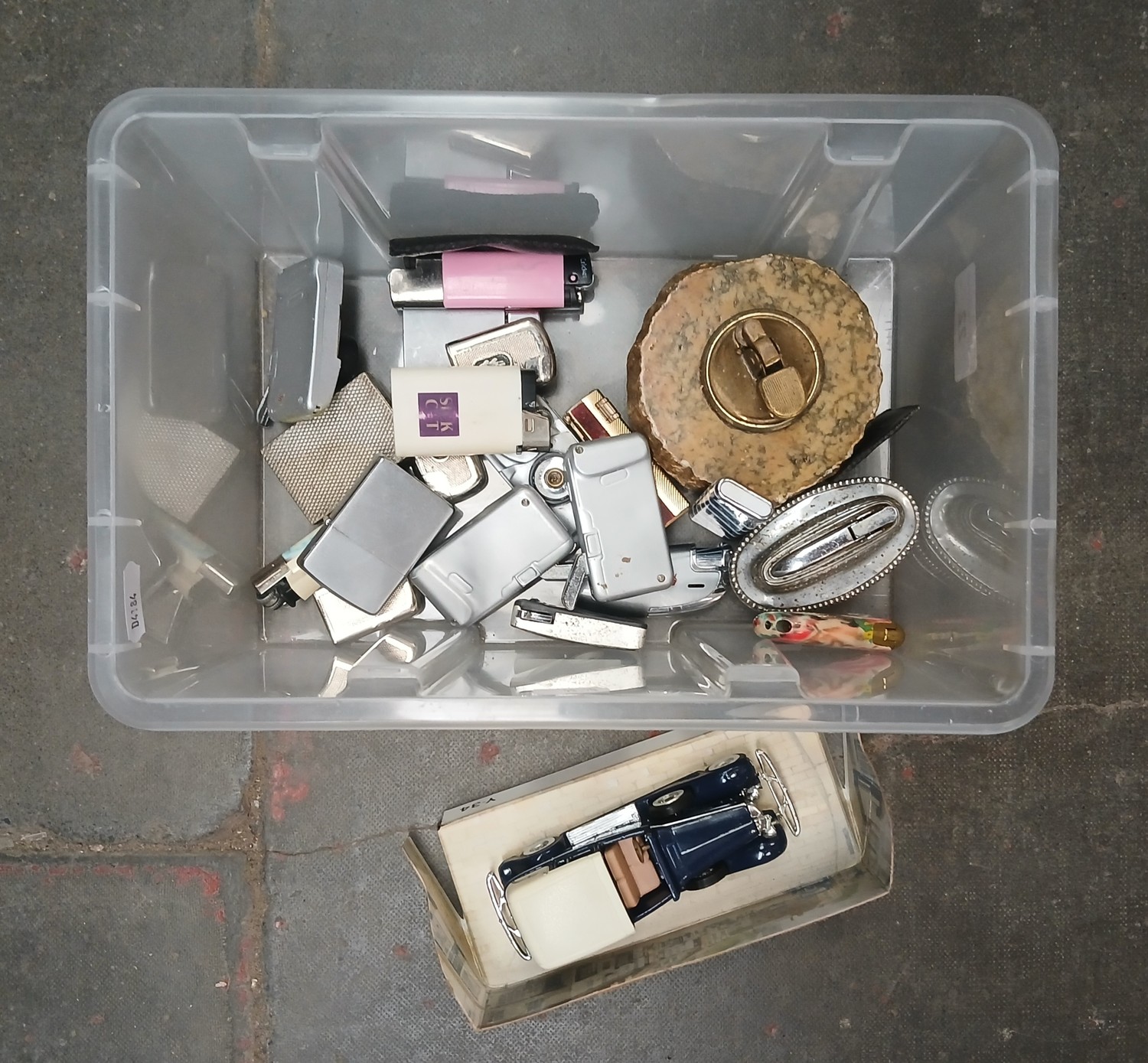 A box of assorted collectable lighters.