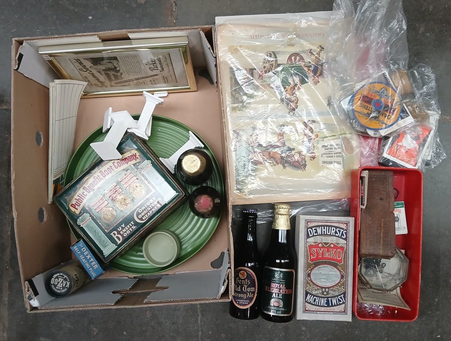 A box of assorted breweriana.