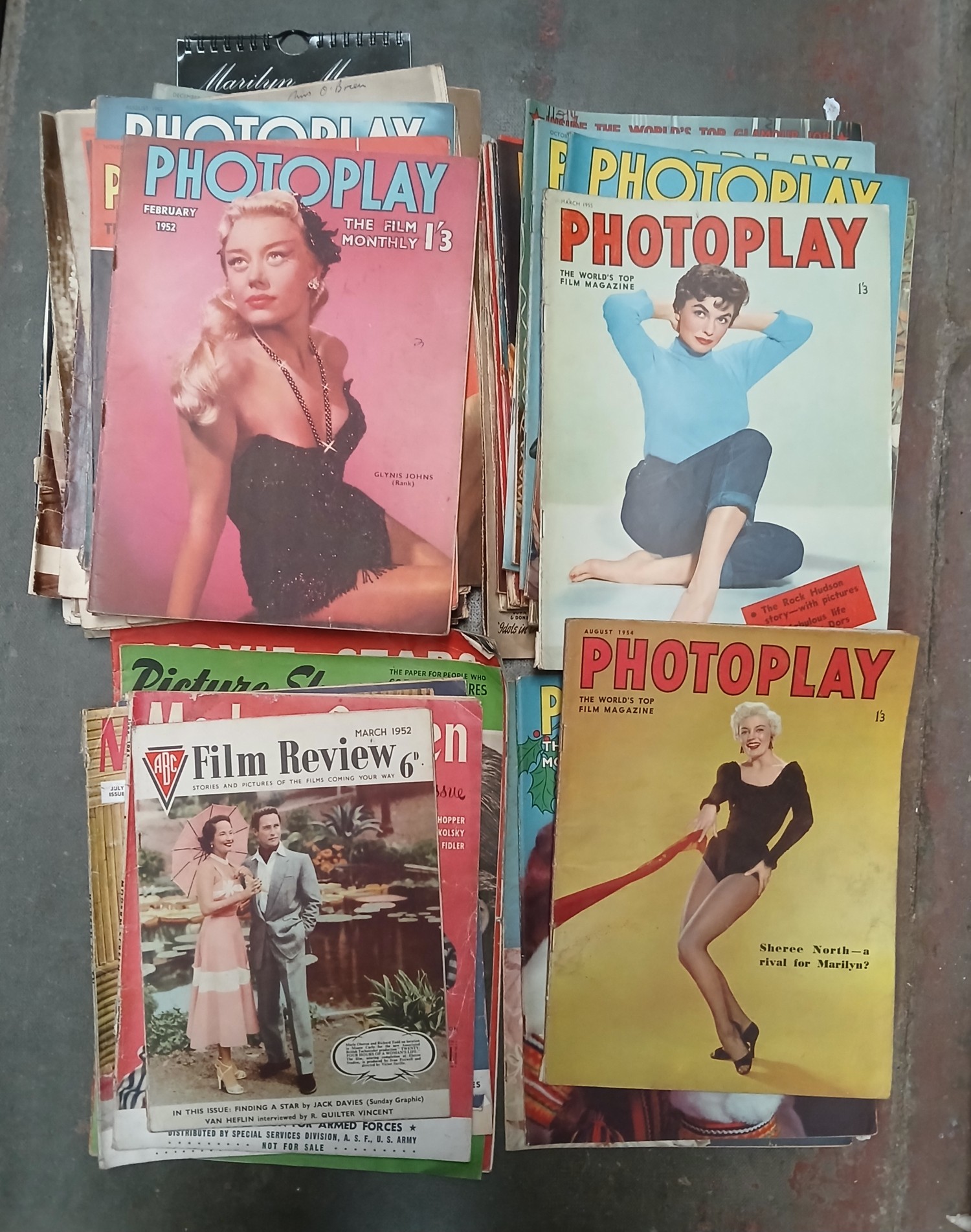 23 copies of Photoplay, all still containing coloured centrefold. Other magazines include Picture Show, Modern Screen, Picturegoer