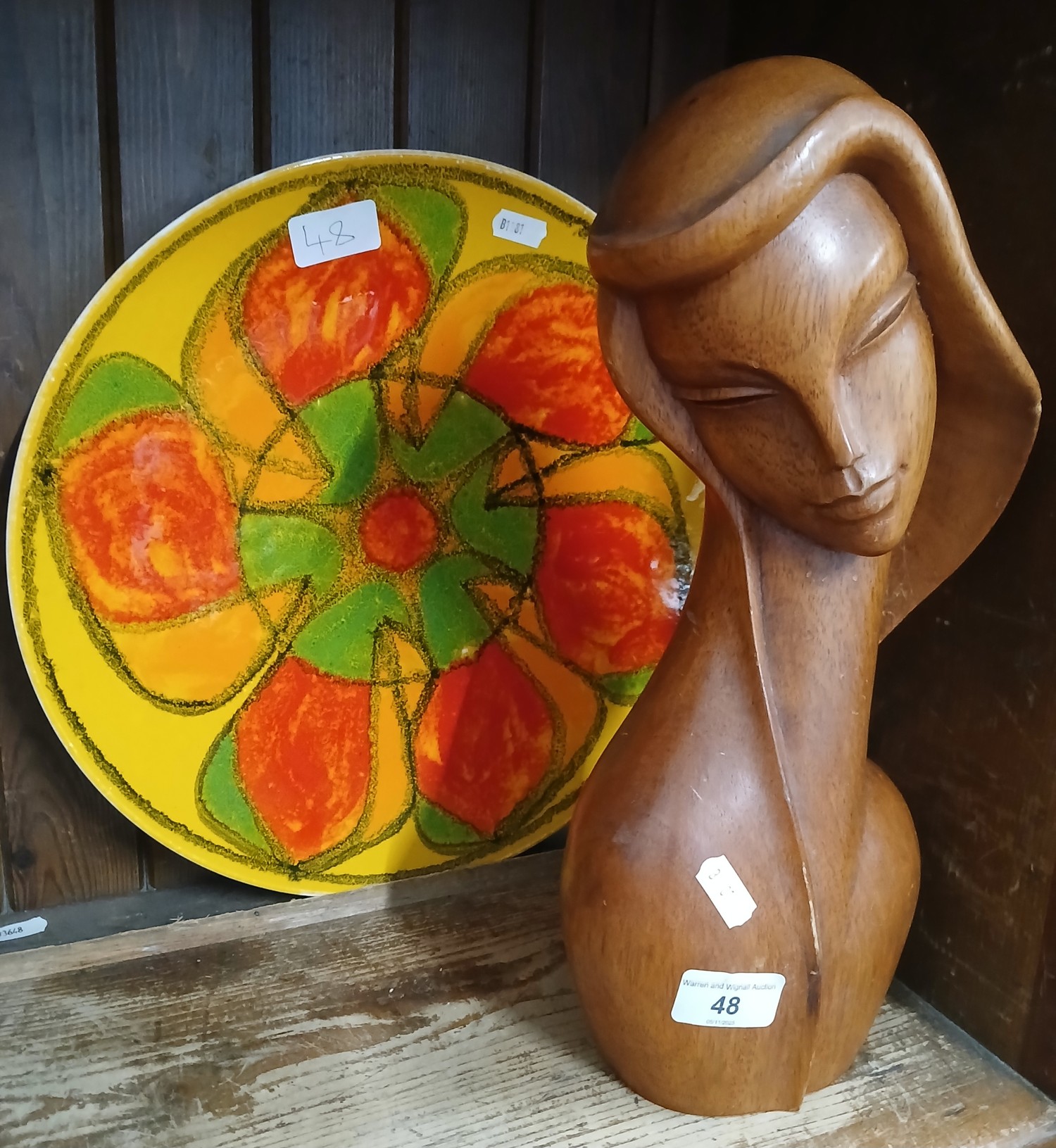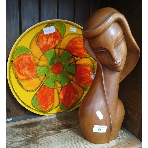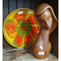 Poole pottery plate and a wooden bust