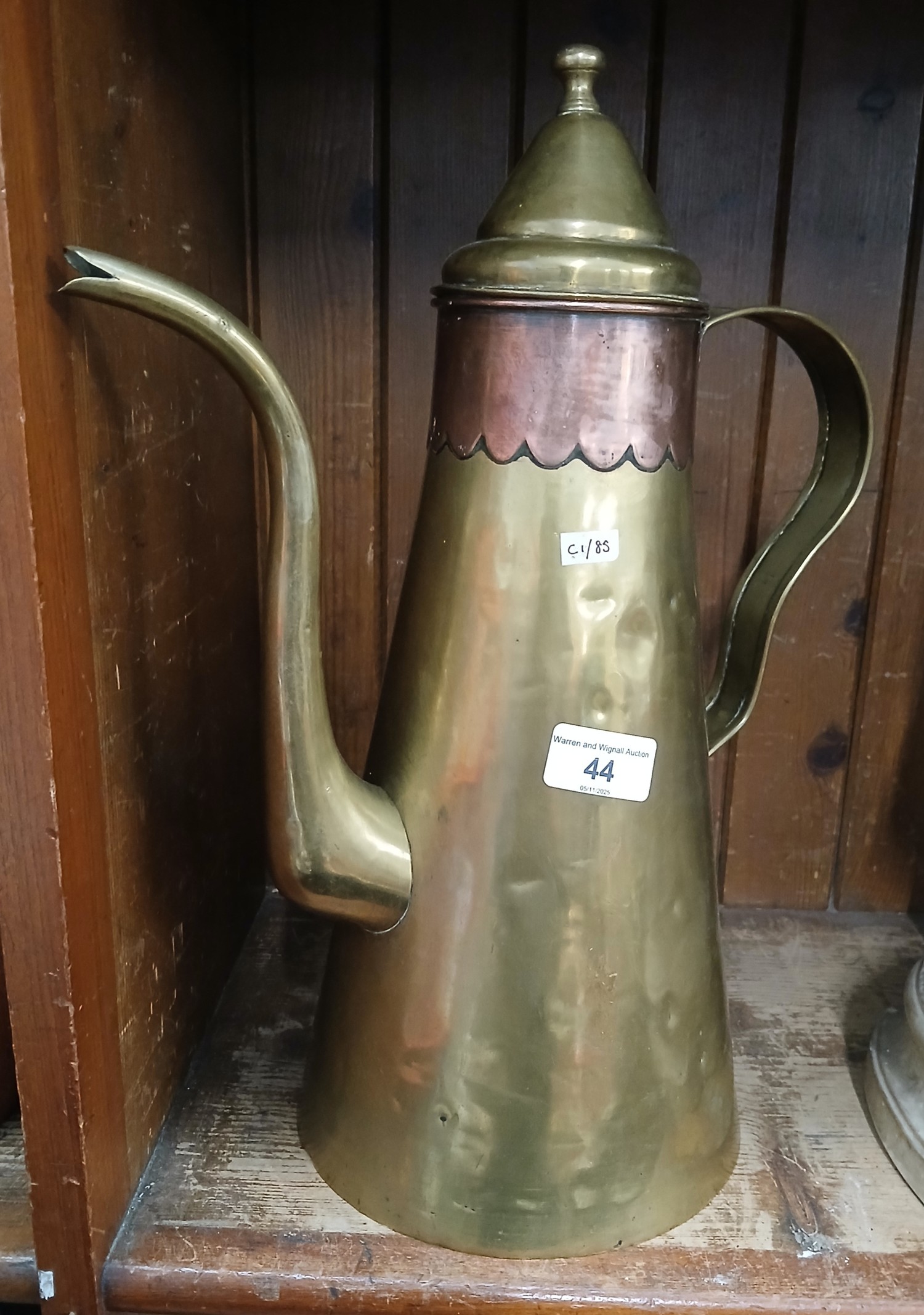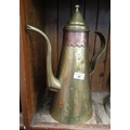 Eastern brass and copper banded lidded jug