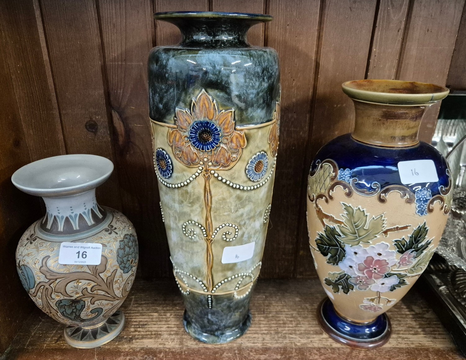 3 Doulton Lambeth ware vases