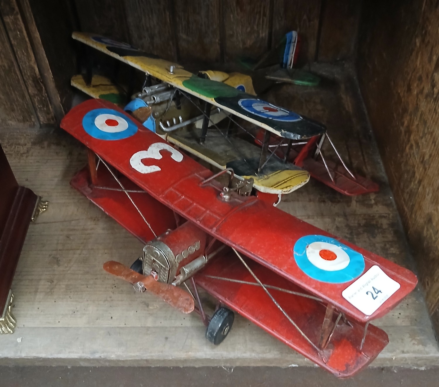 Two tin plate style metal model WWI Biplanes, approx 1/18 scale.