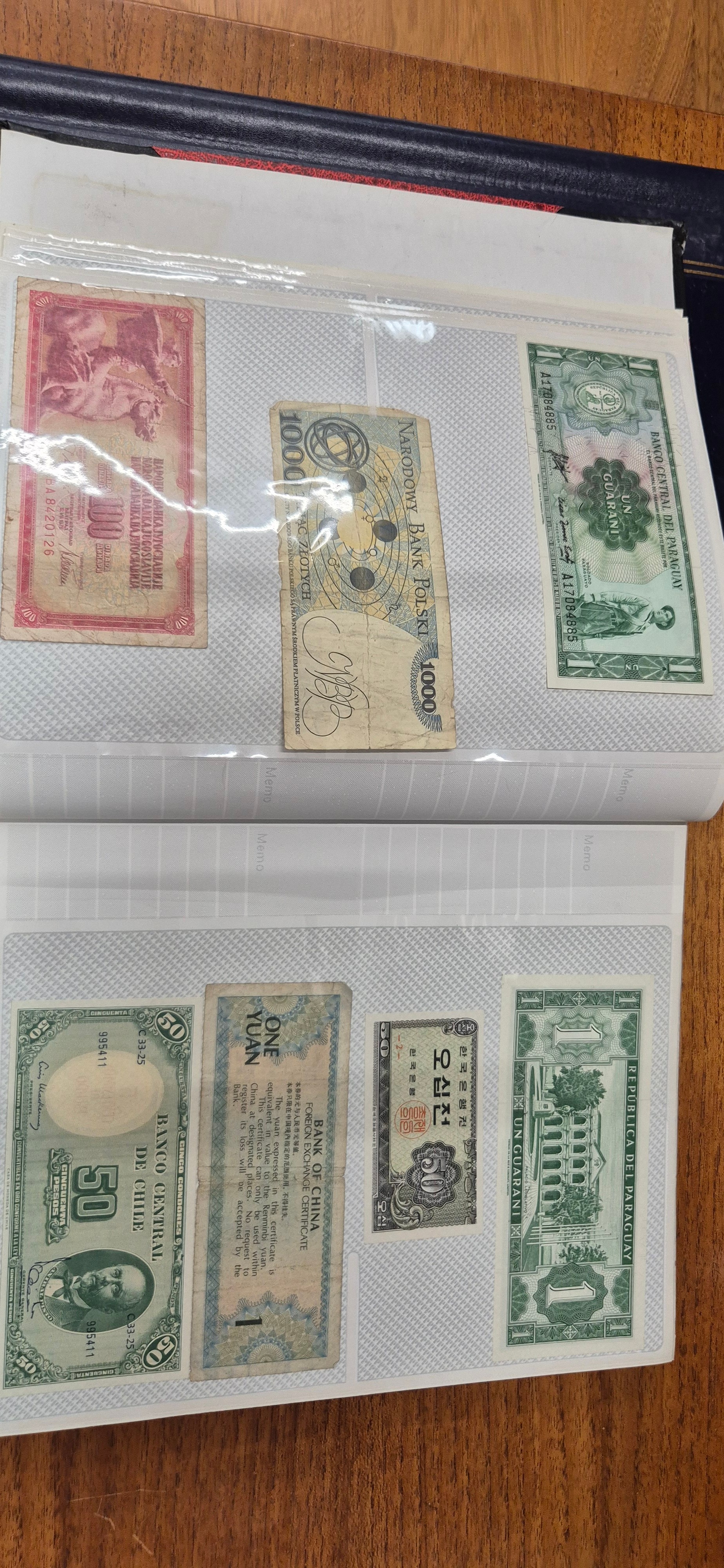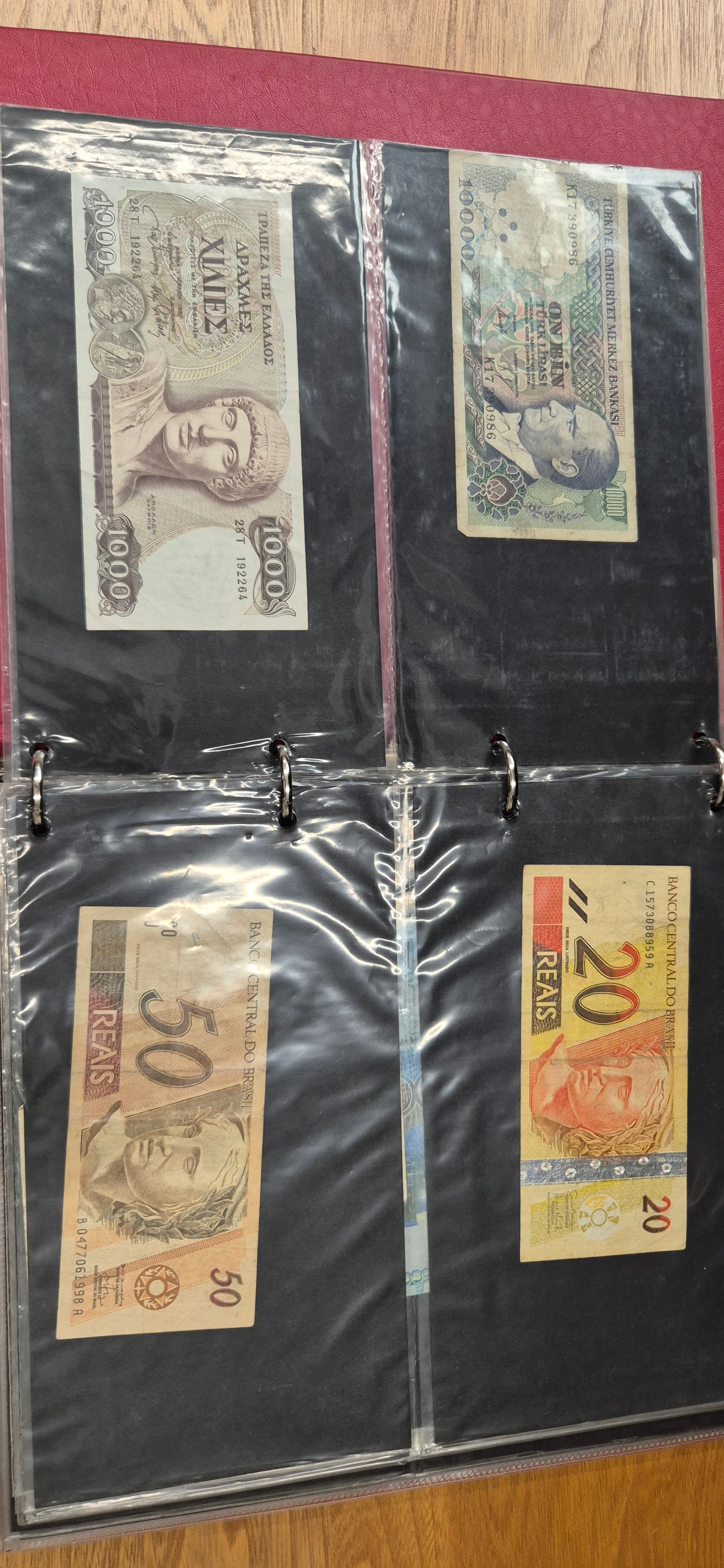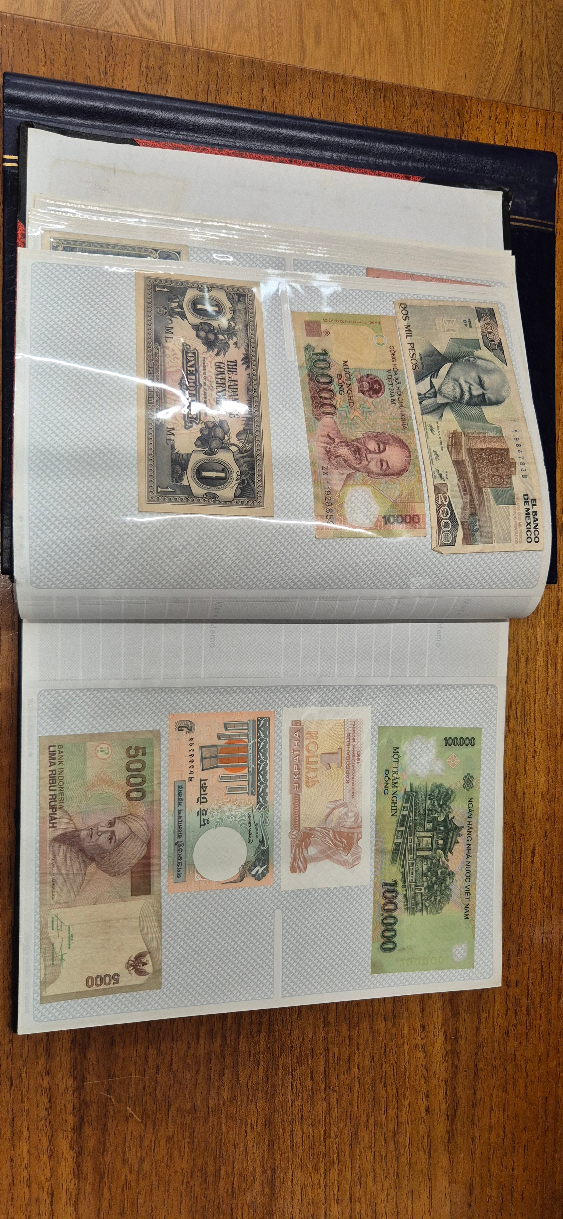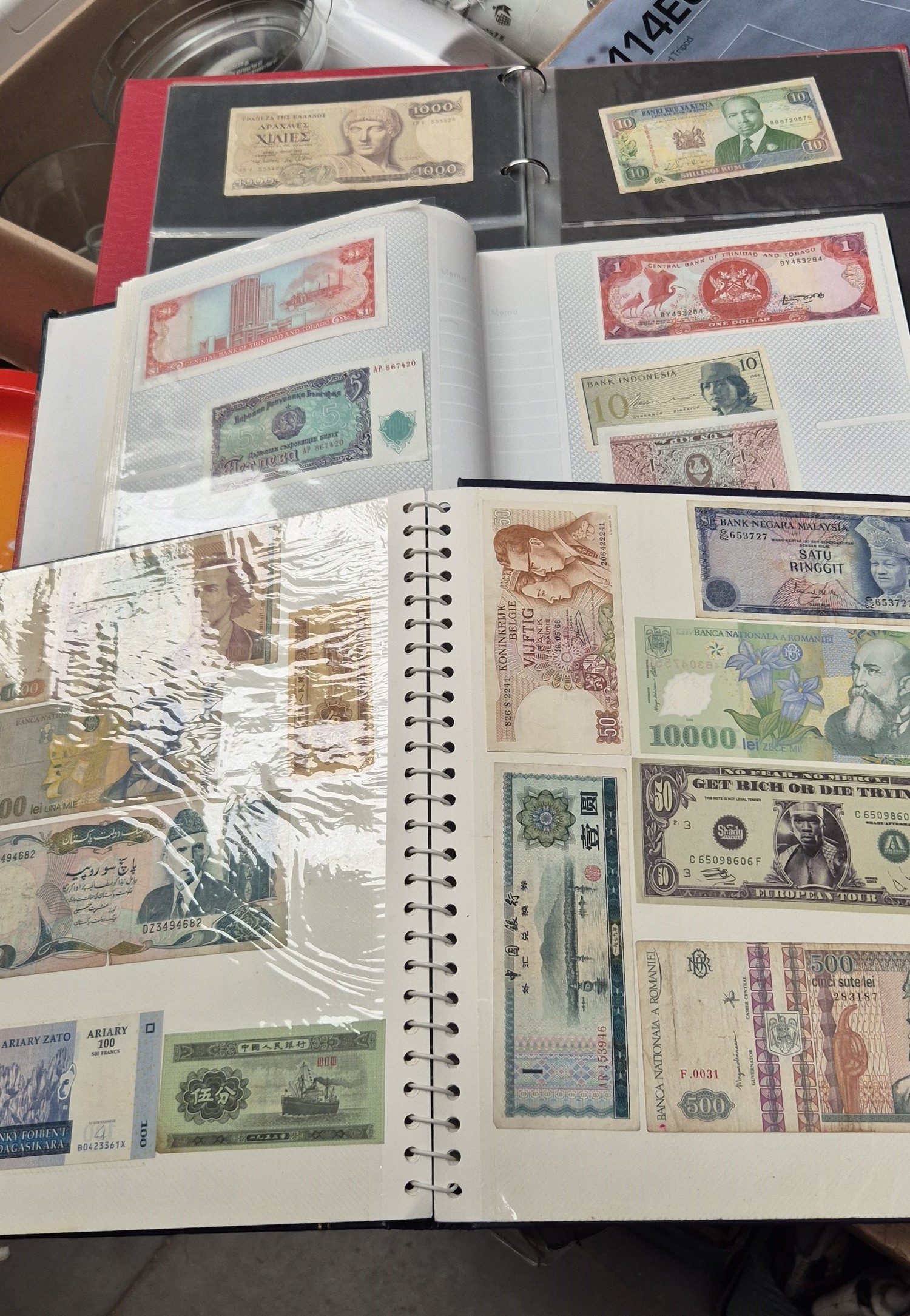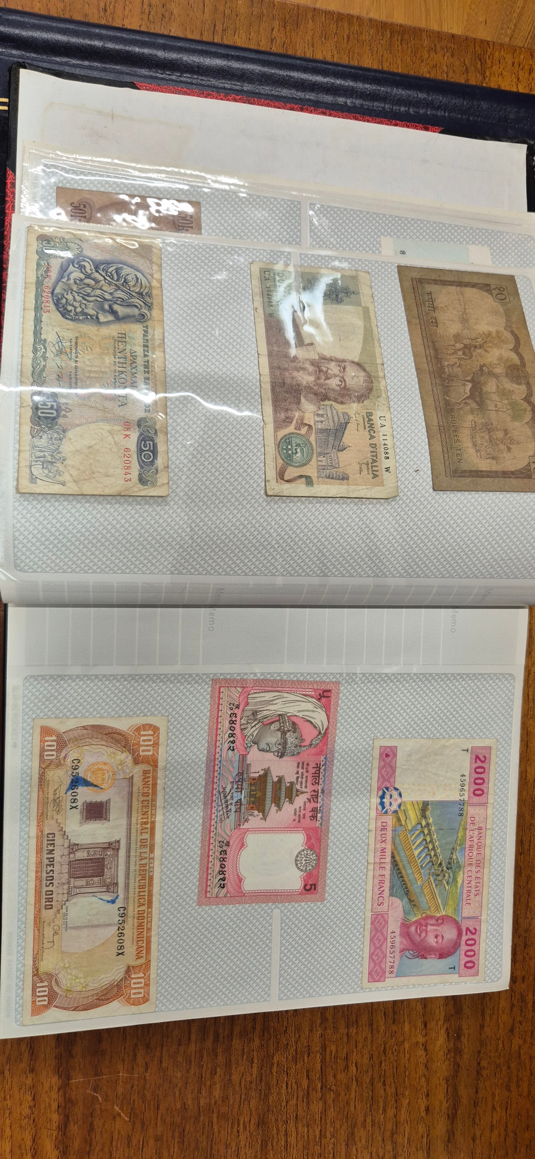 3 albums containing world banknotes
