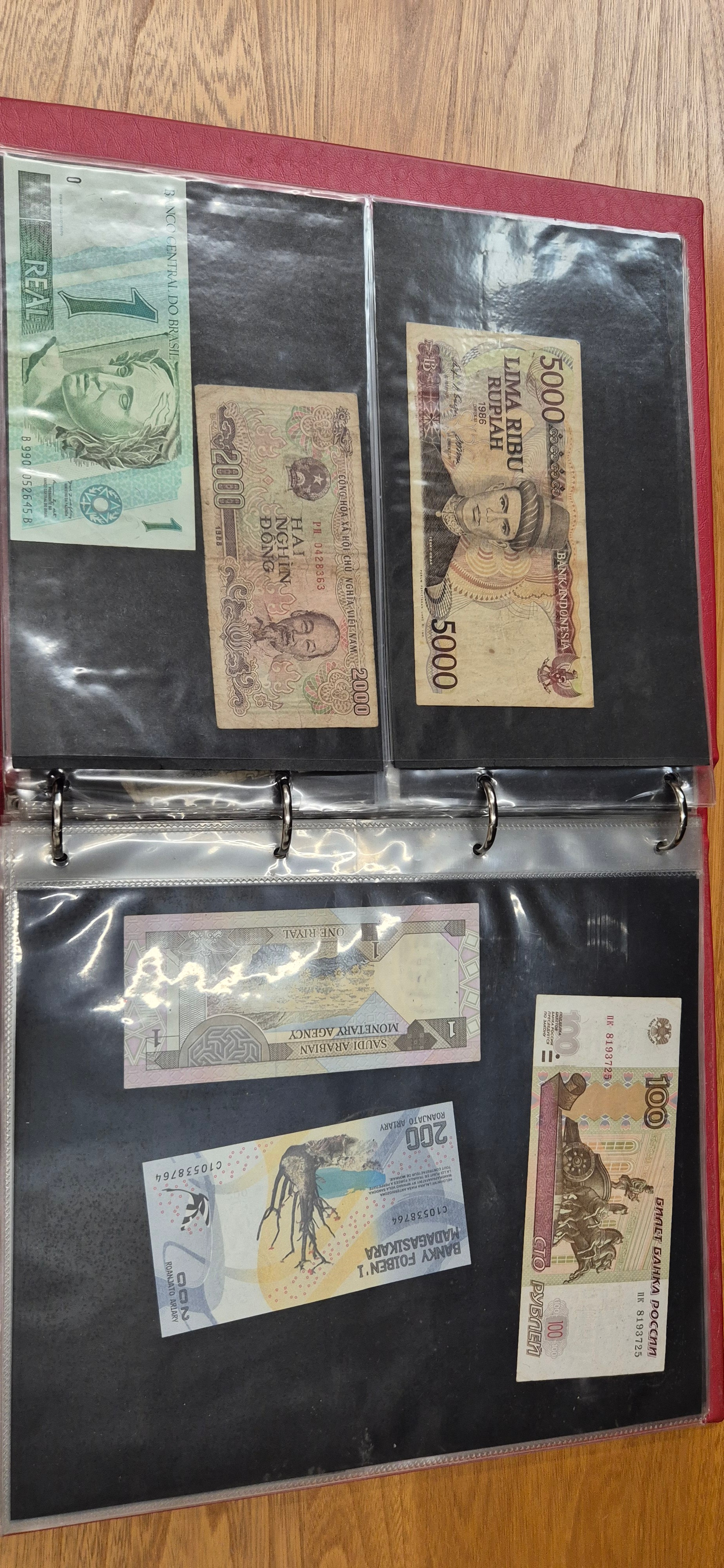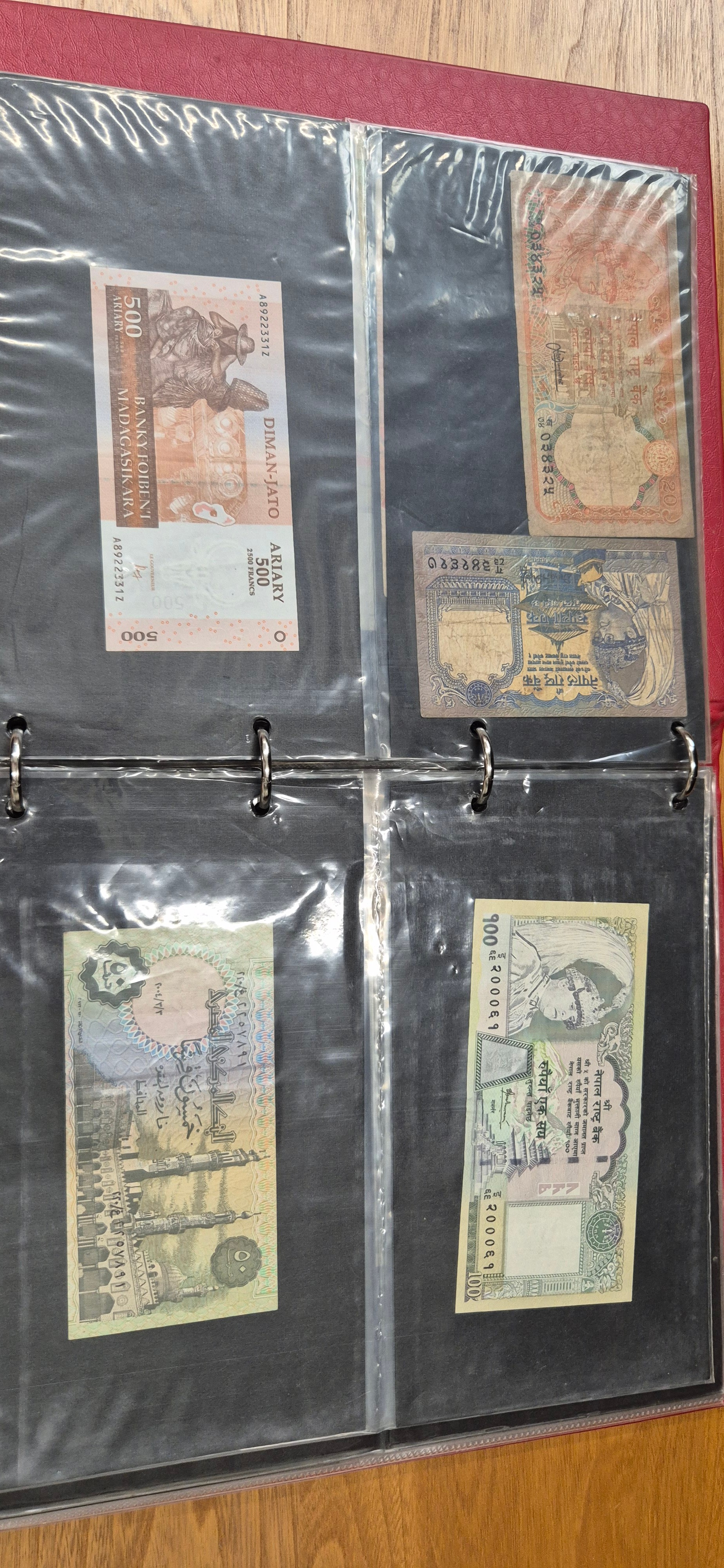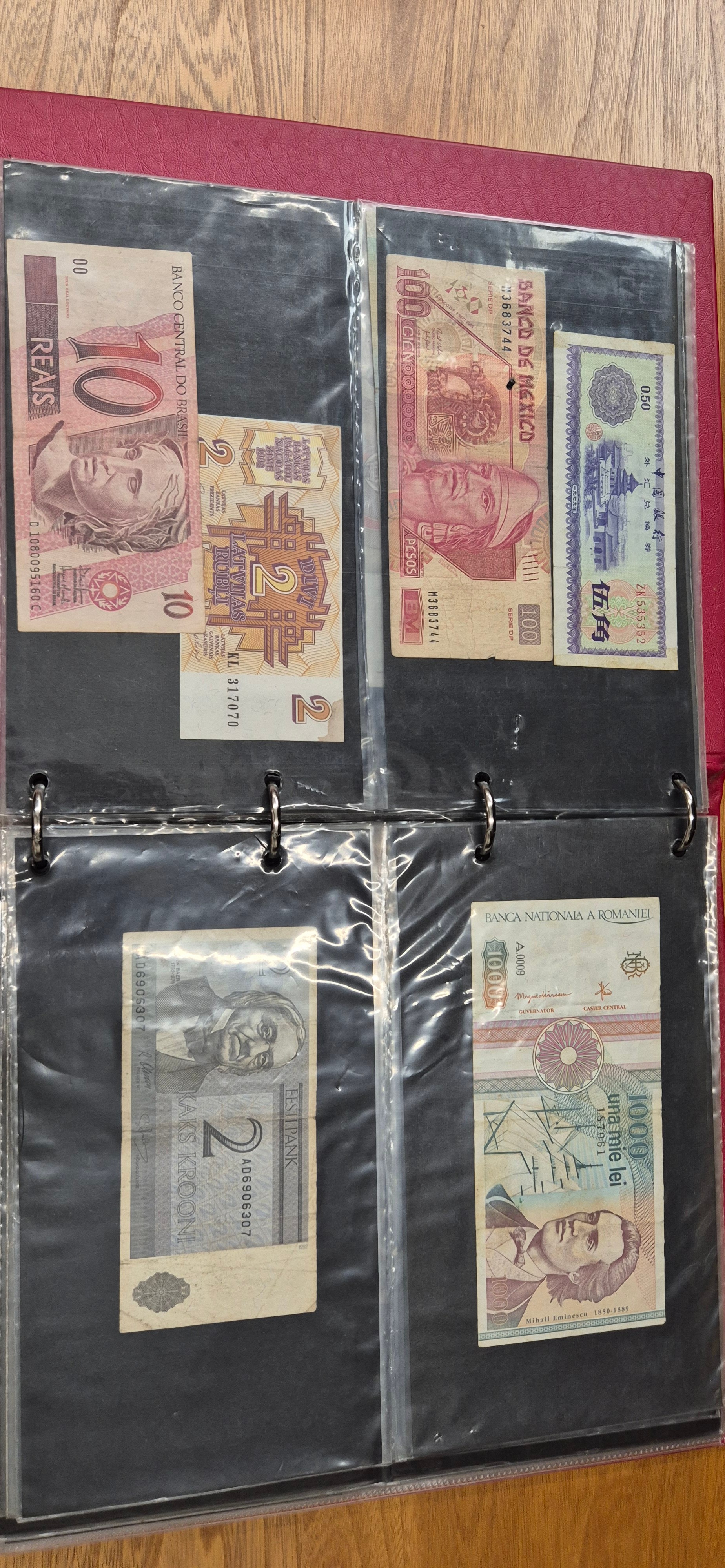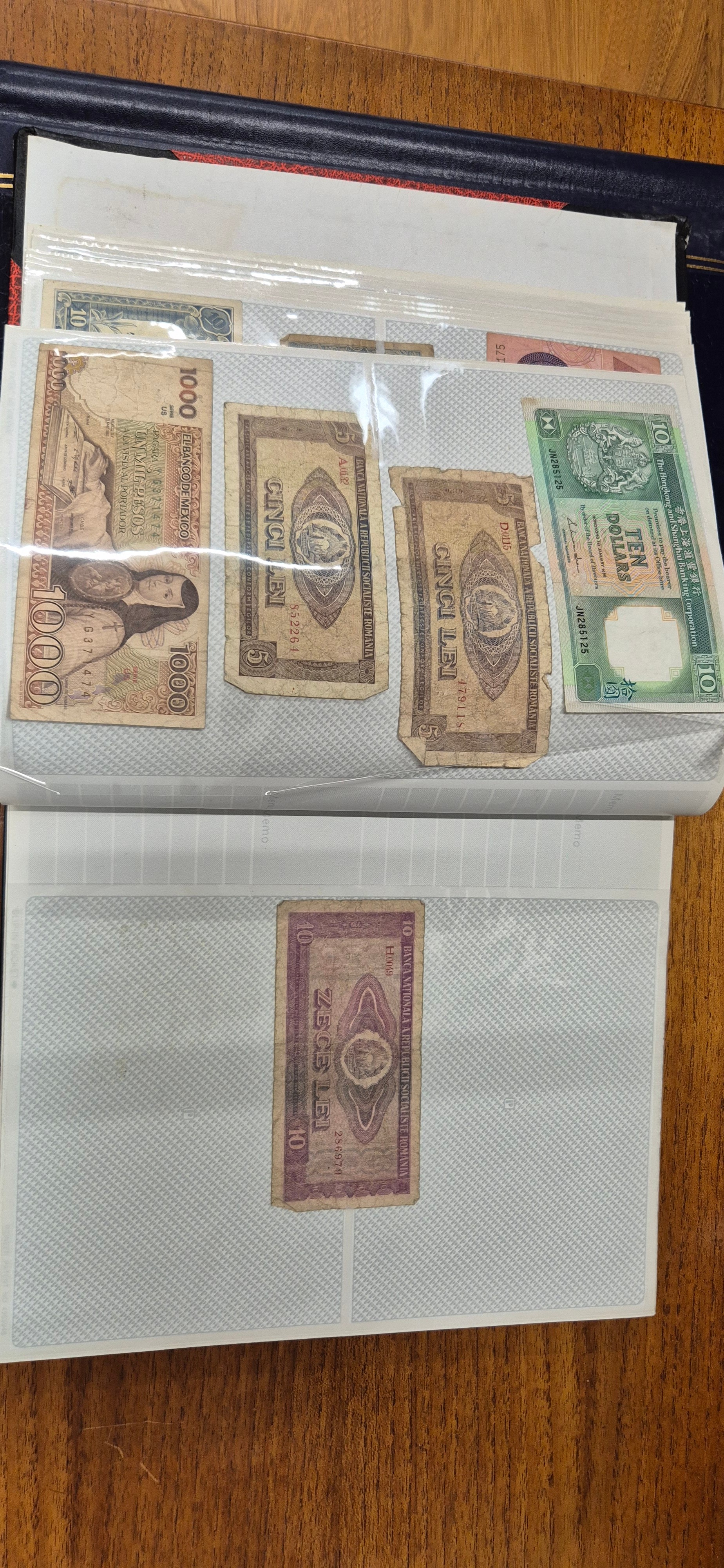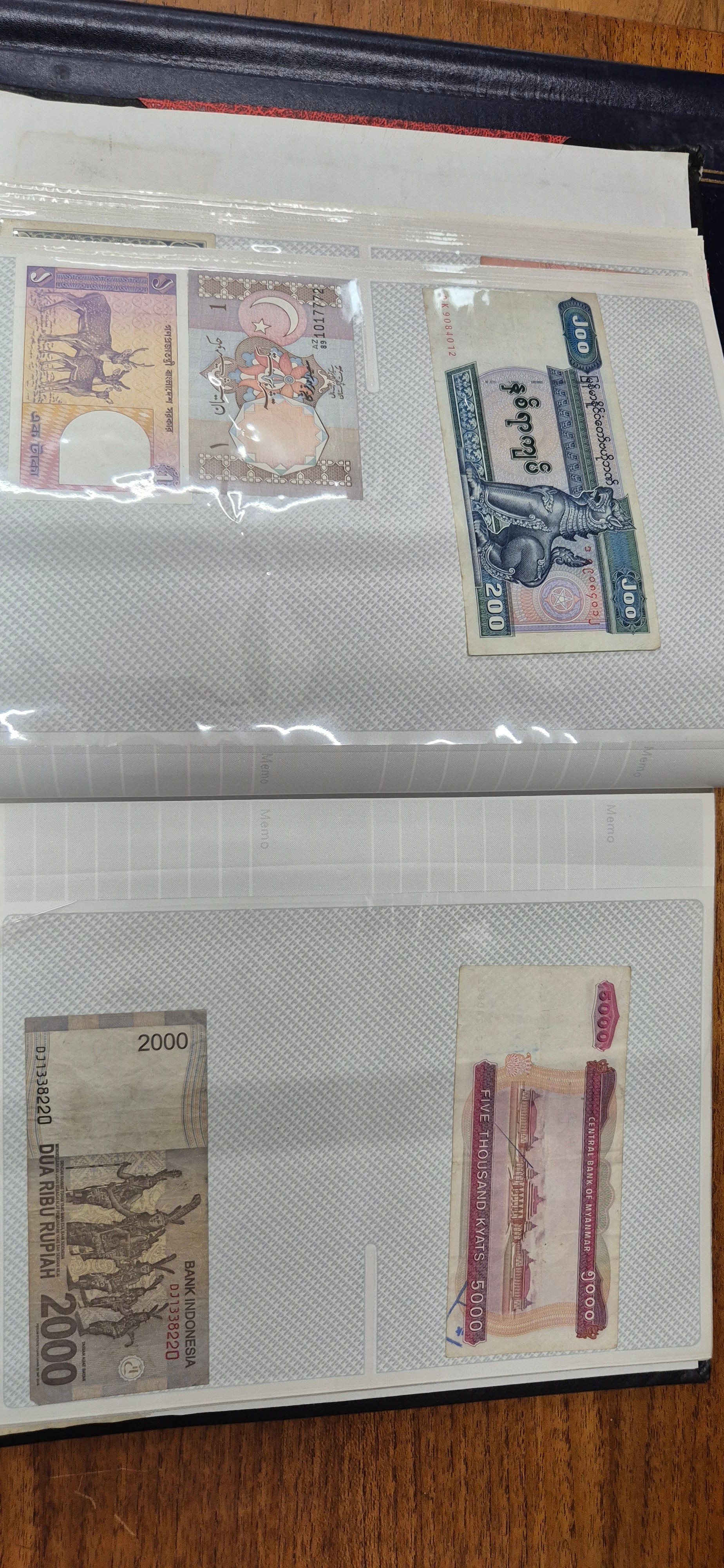 3 albums containing world banknotes