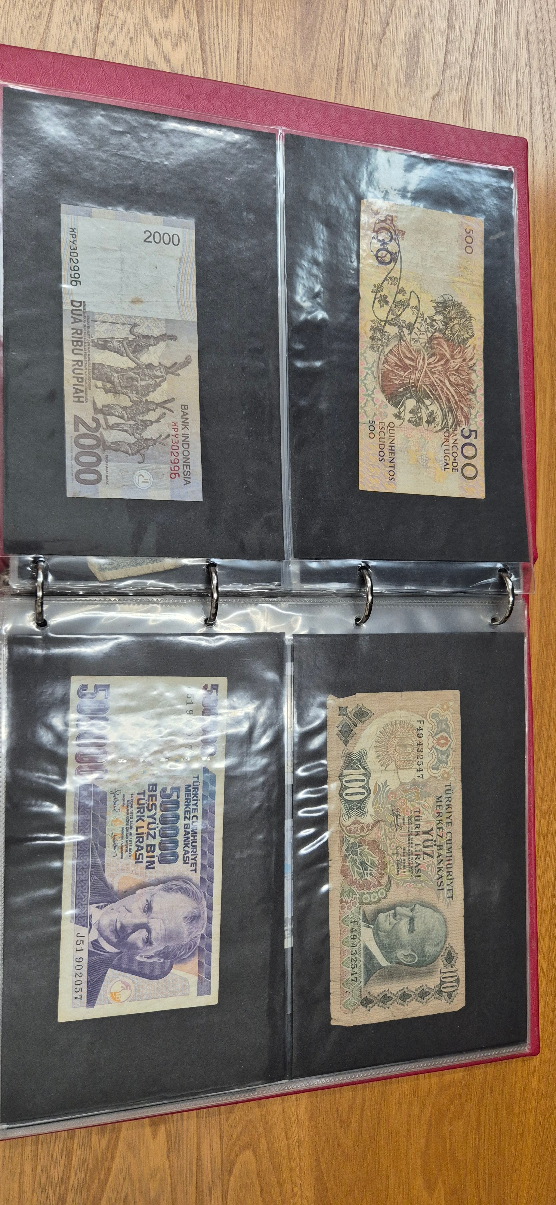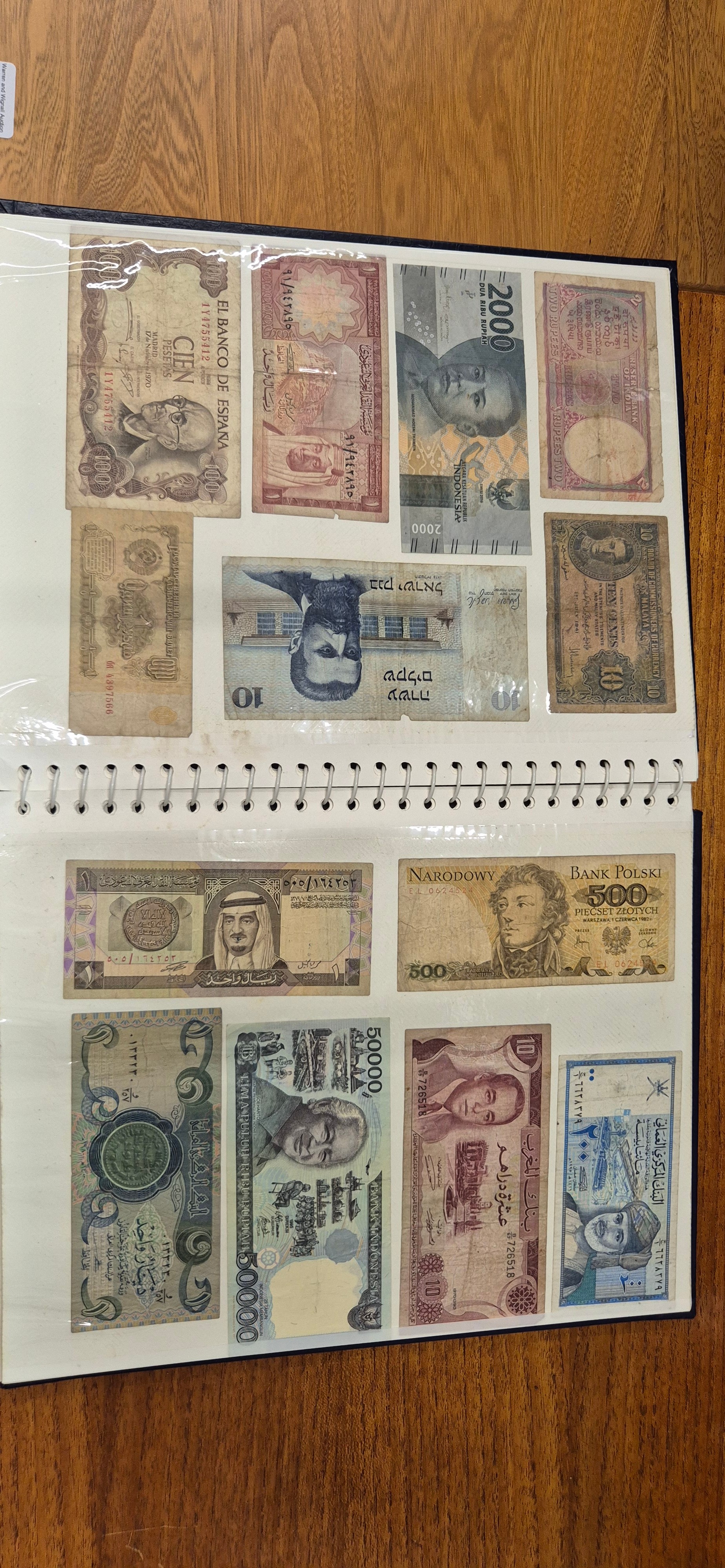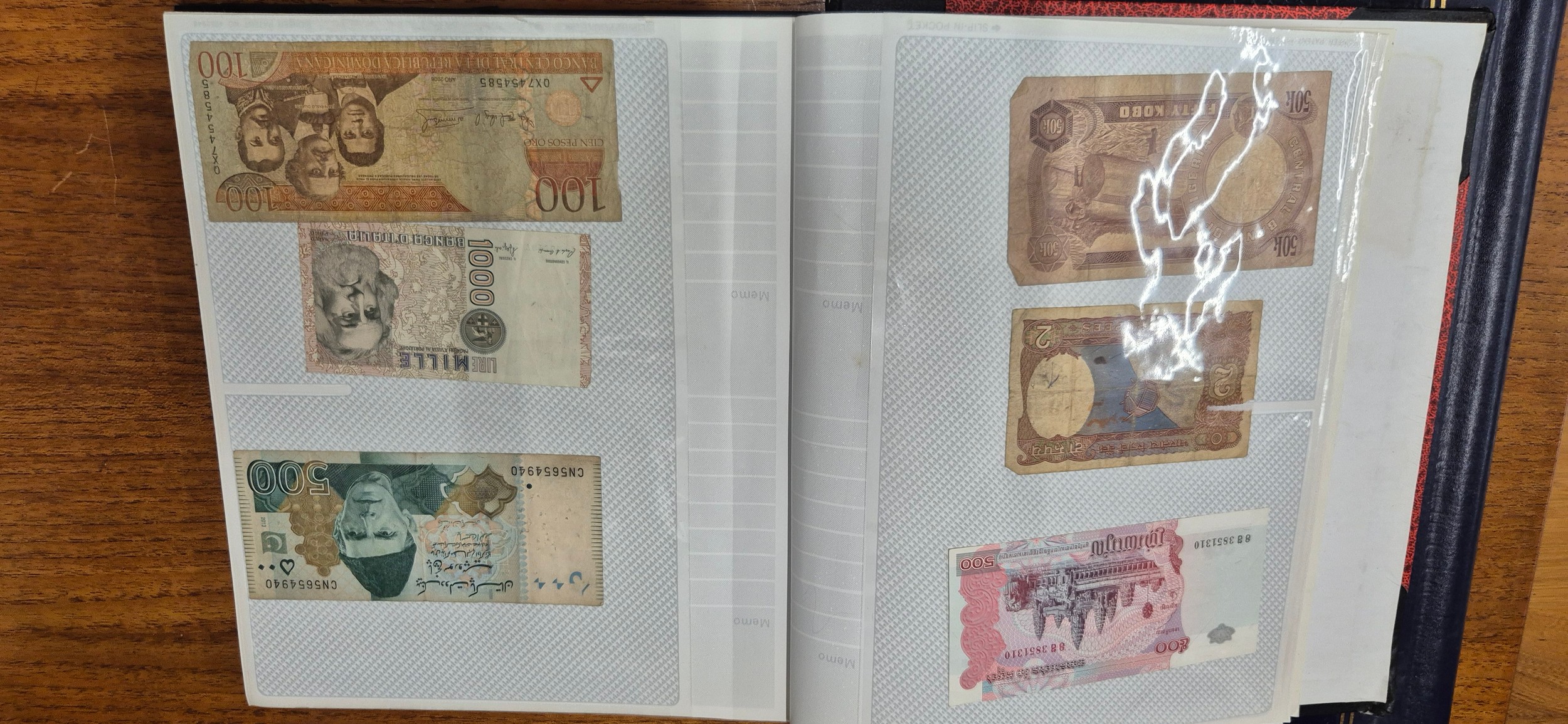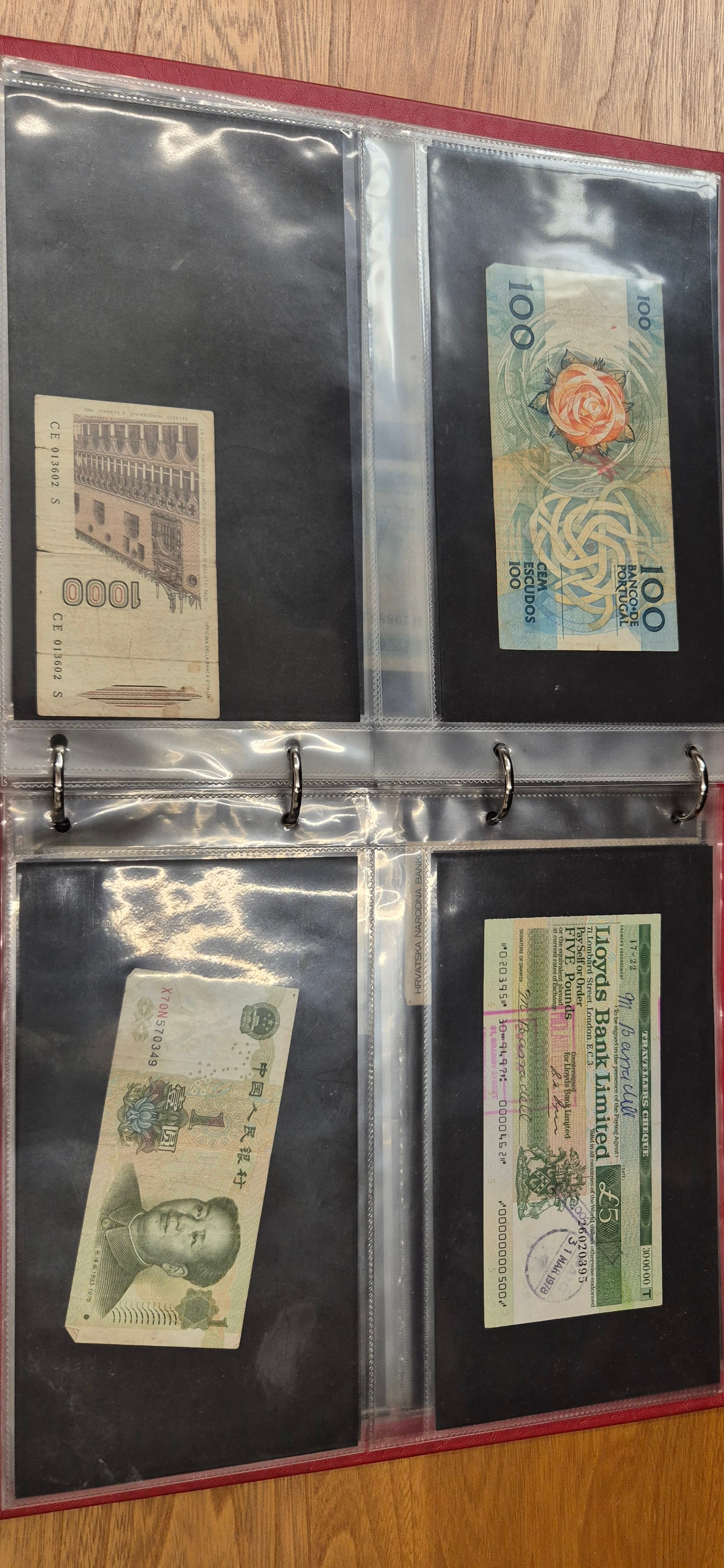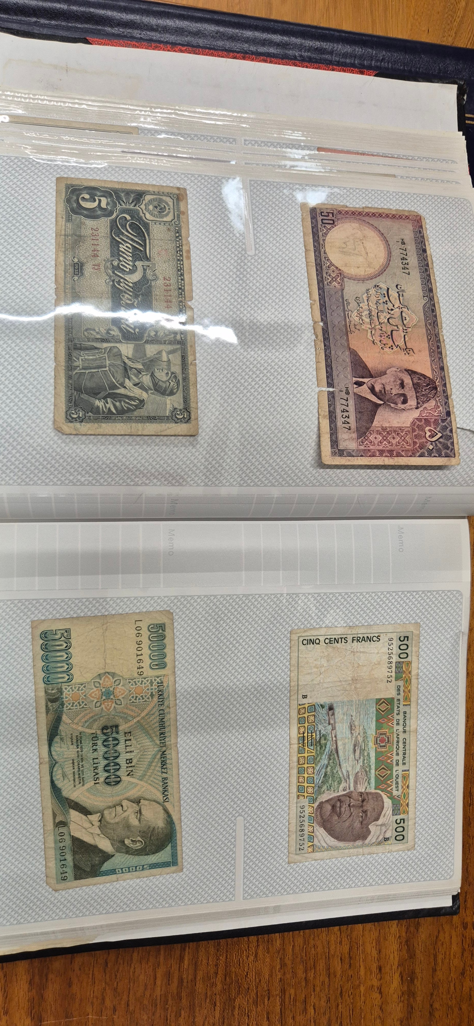 3 albums containing world banknotes