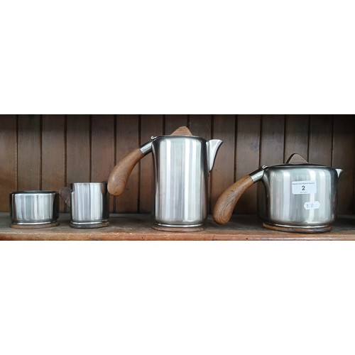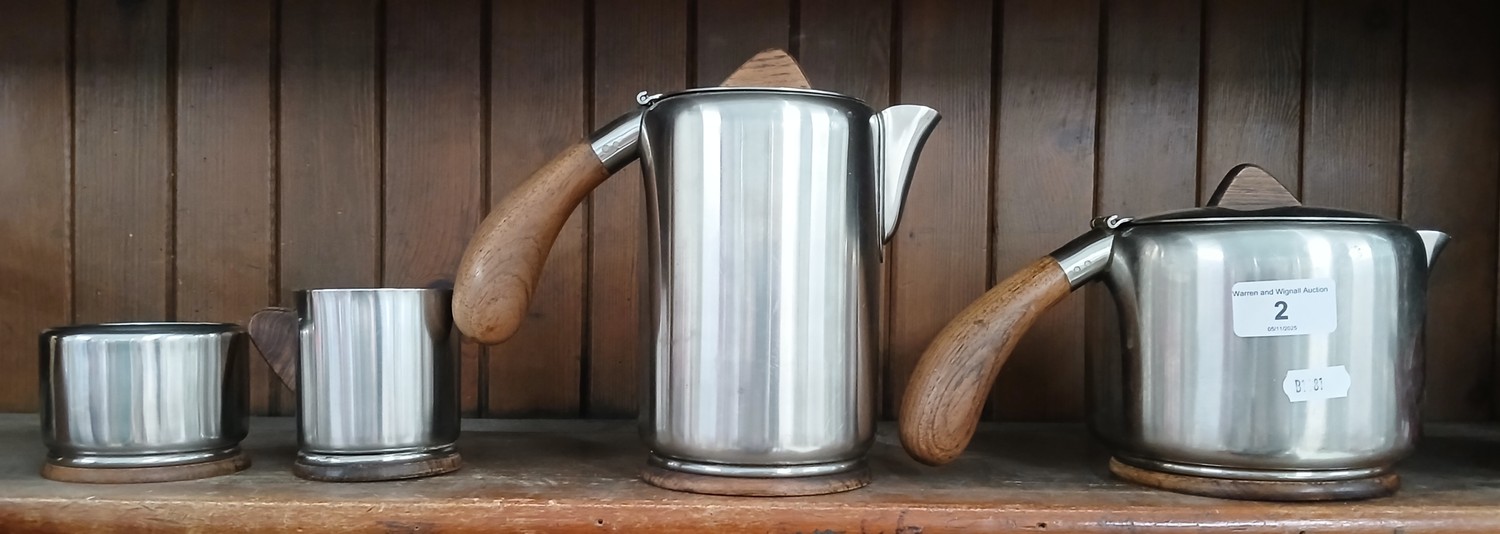 Lundtoft Danish stainless steel and wooden handled four piece tea set.