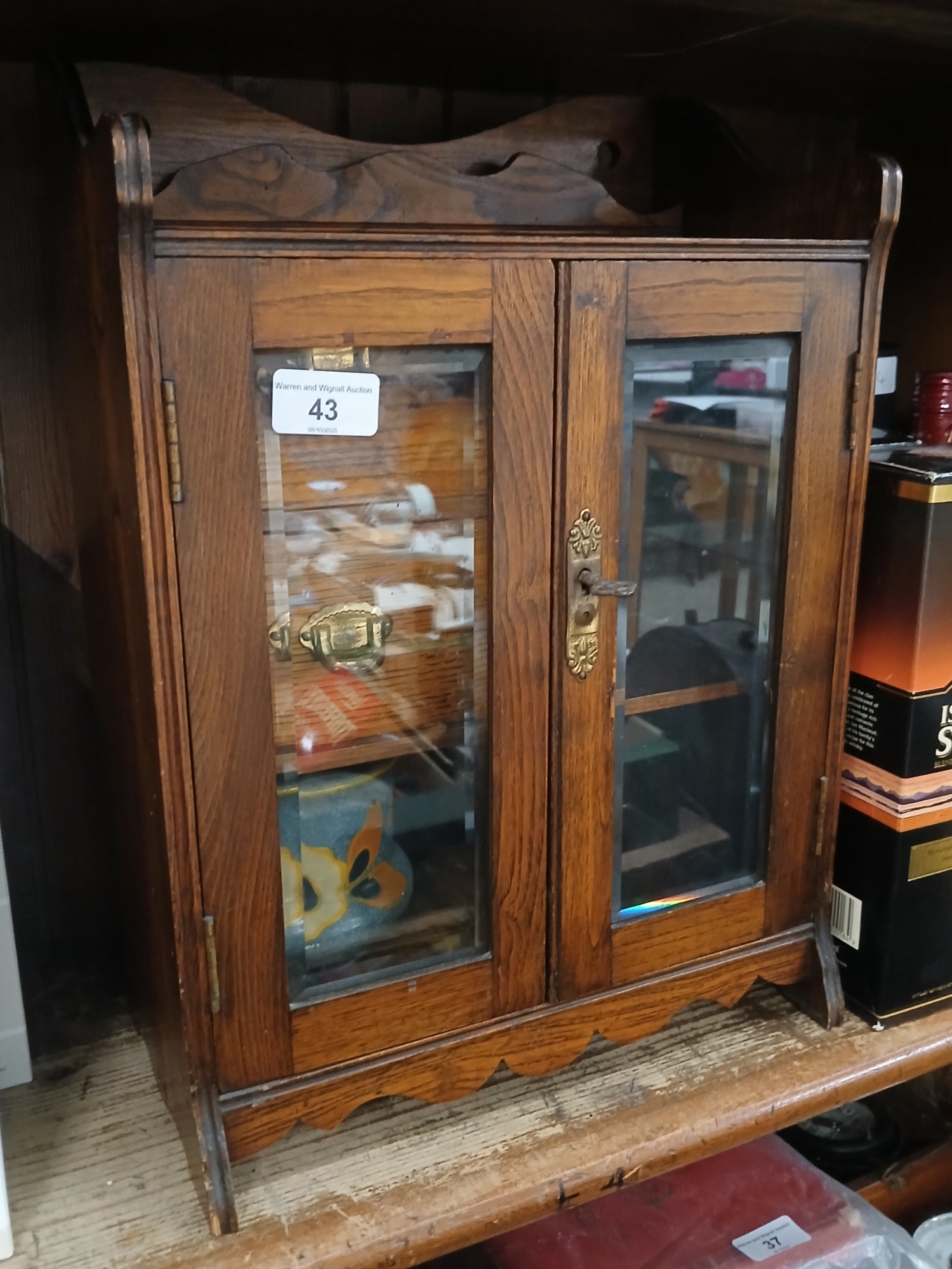 An early 20th century oak smoker's cabinet, together with walking sticks.