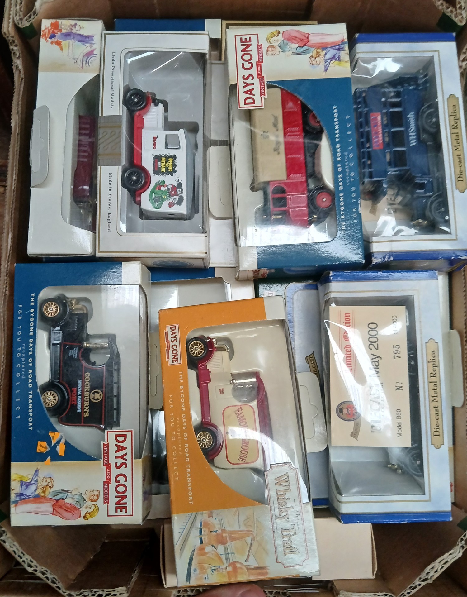 A box of 20 die-cast model vehicles.