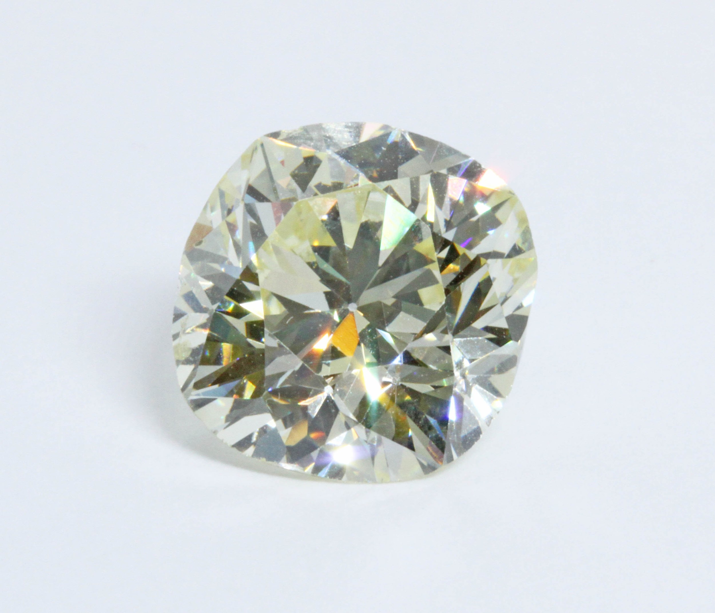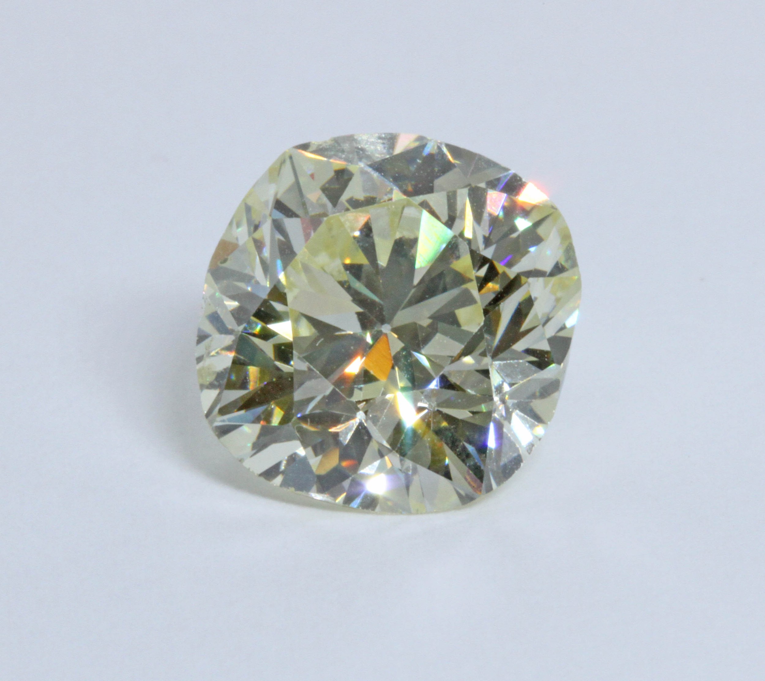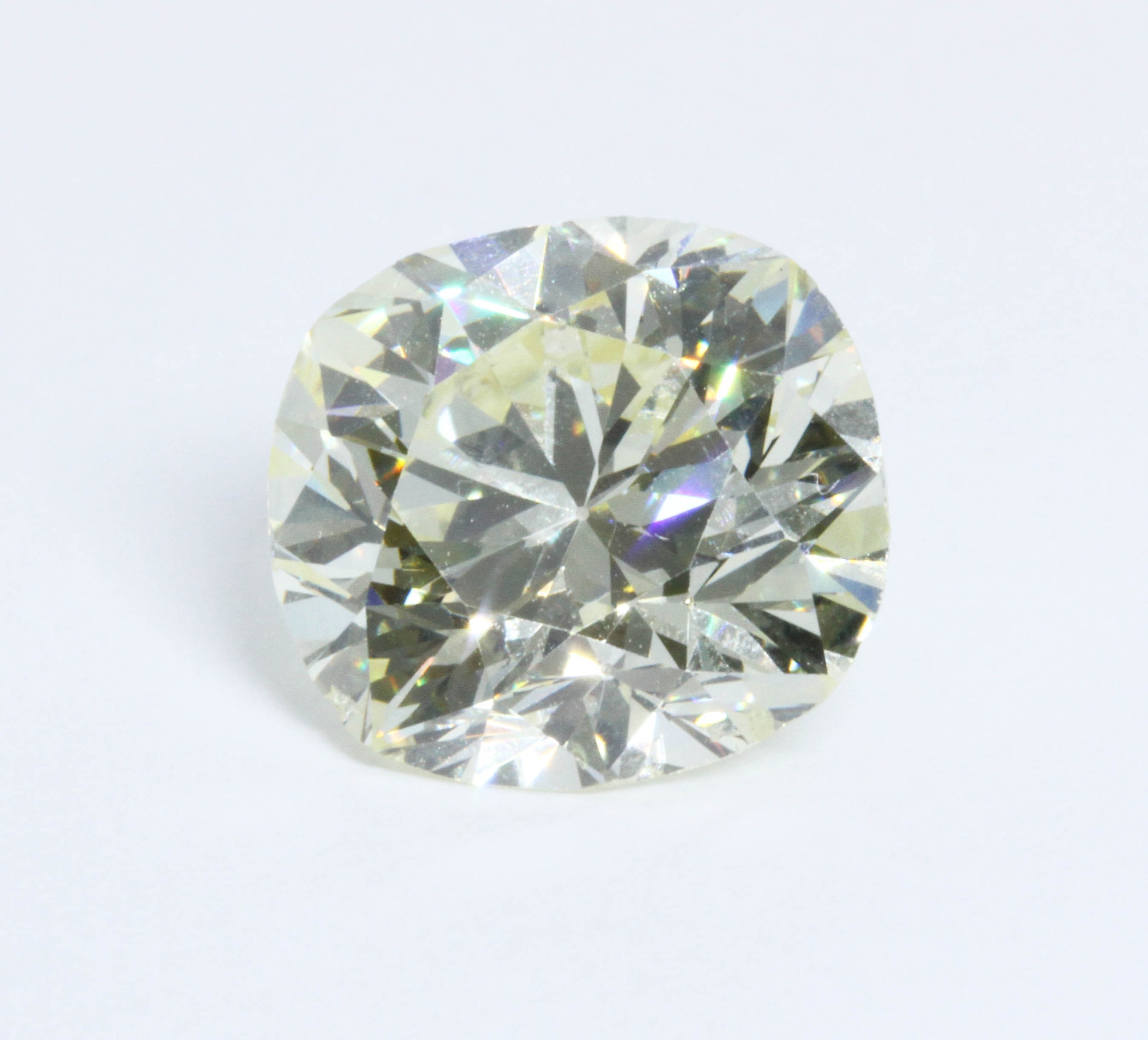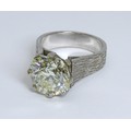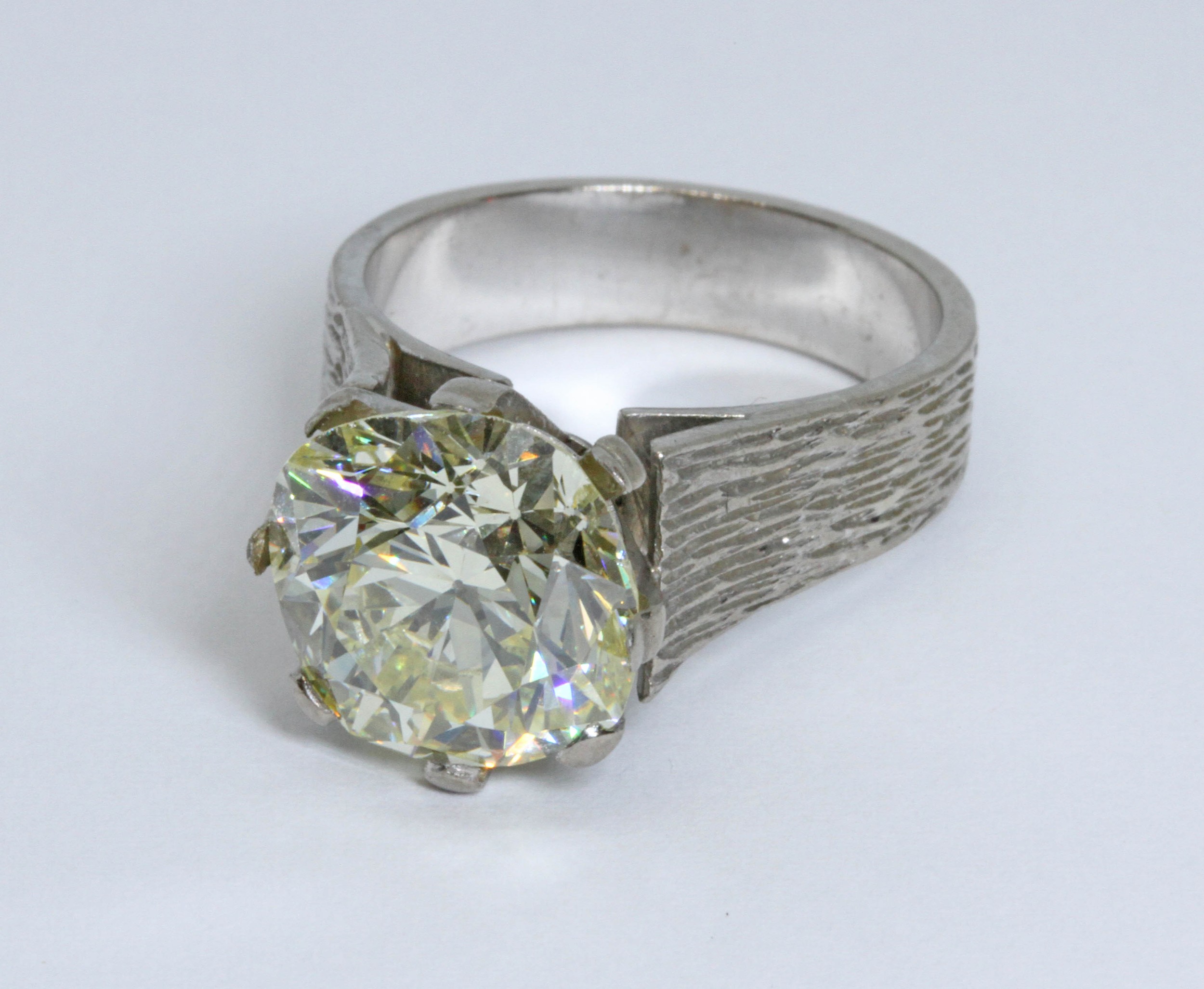 A diamond solitaire ring, the old cut stone weighing approximately 6.35ct, the approximate qualities; colour tinted, clarity SI1/SI2, with textured white metal ring marked '18ct', weight 8.9g, size N.
