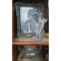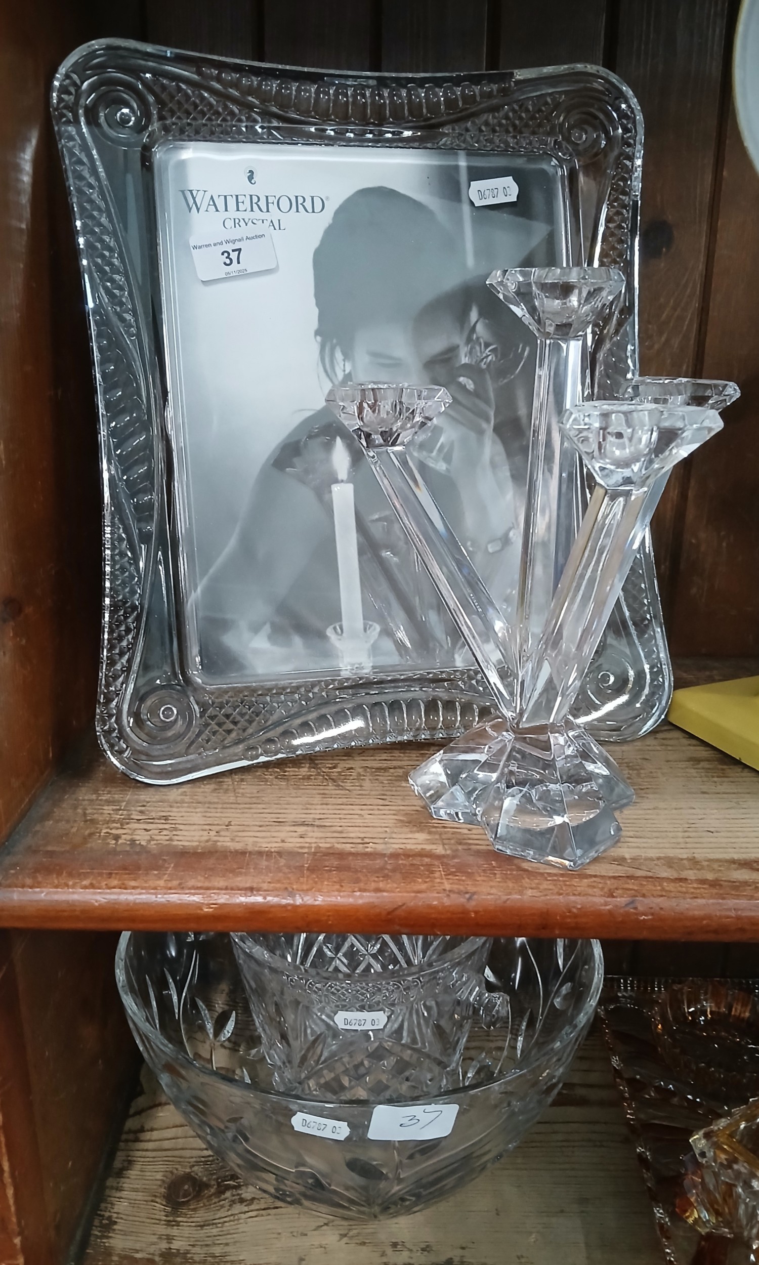 Assorted cut glass comprising a Waterford frame 35cm x 29cm, Doulton ice bucket, Villeroy and Boch candlestick and a bowl.