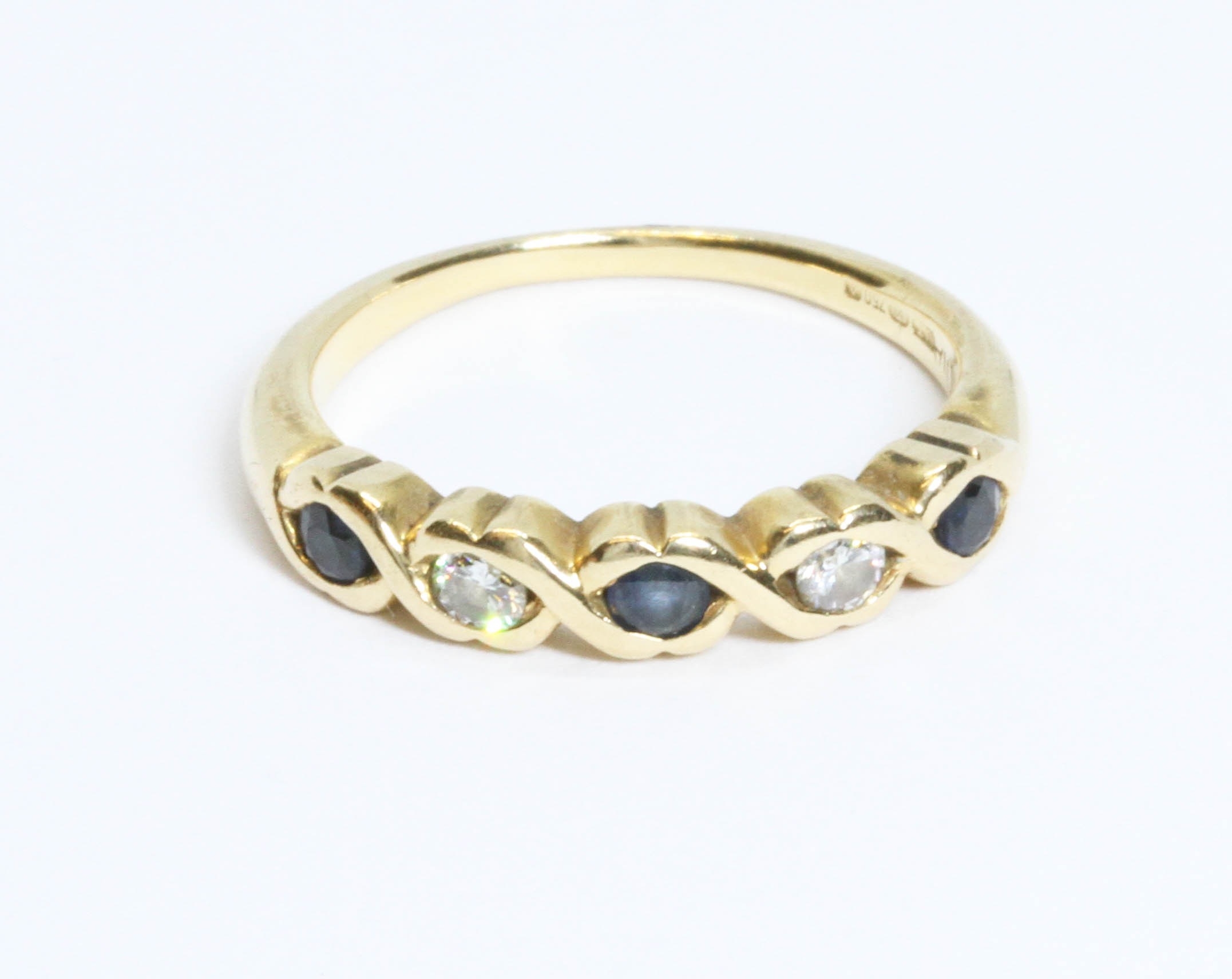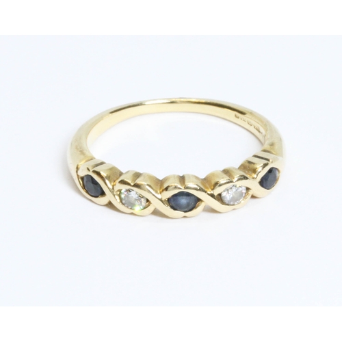 An 18ct gold gold diamond and sapphire ring, import marks, gross weight 3.4g, size L.