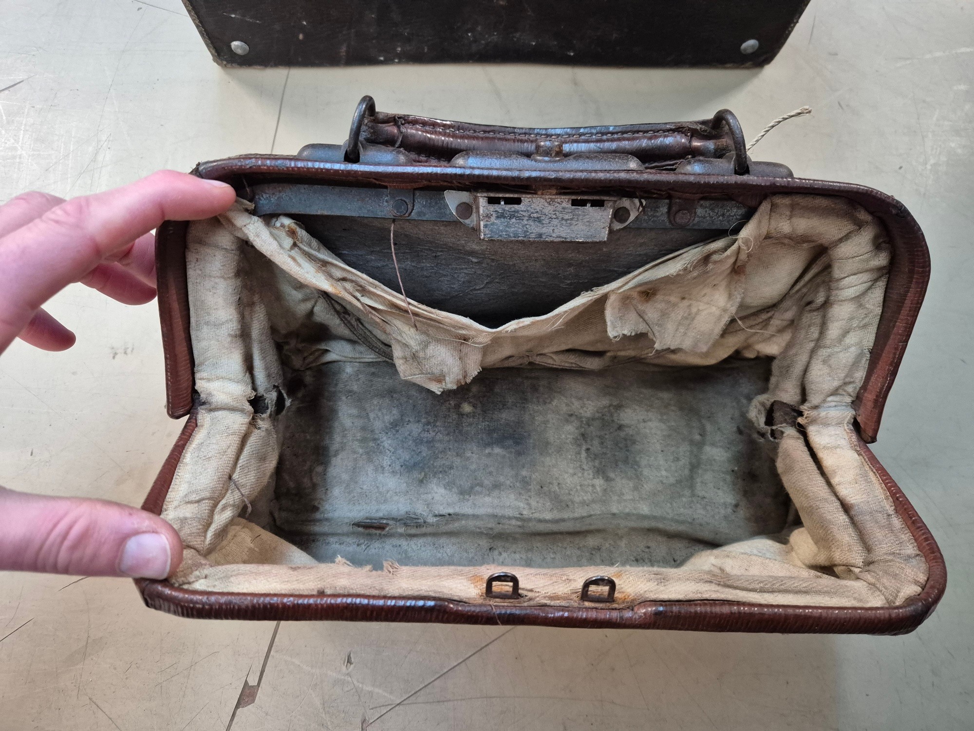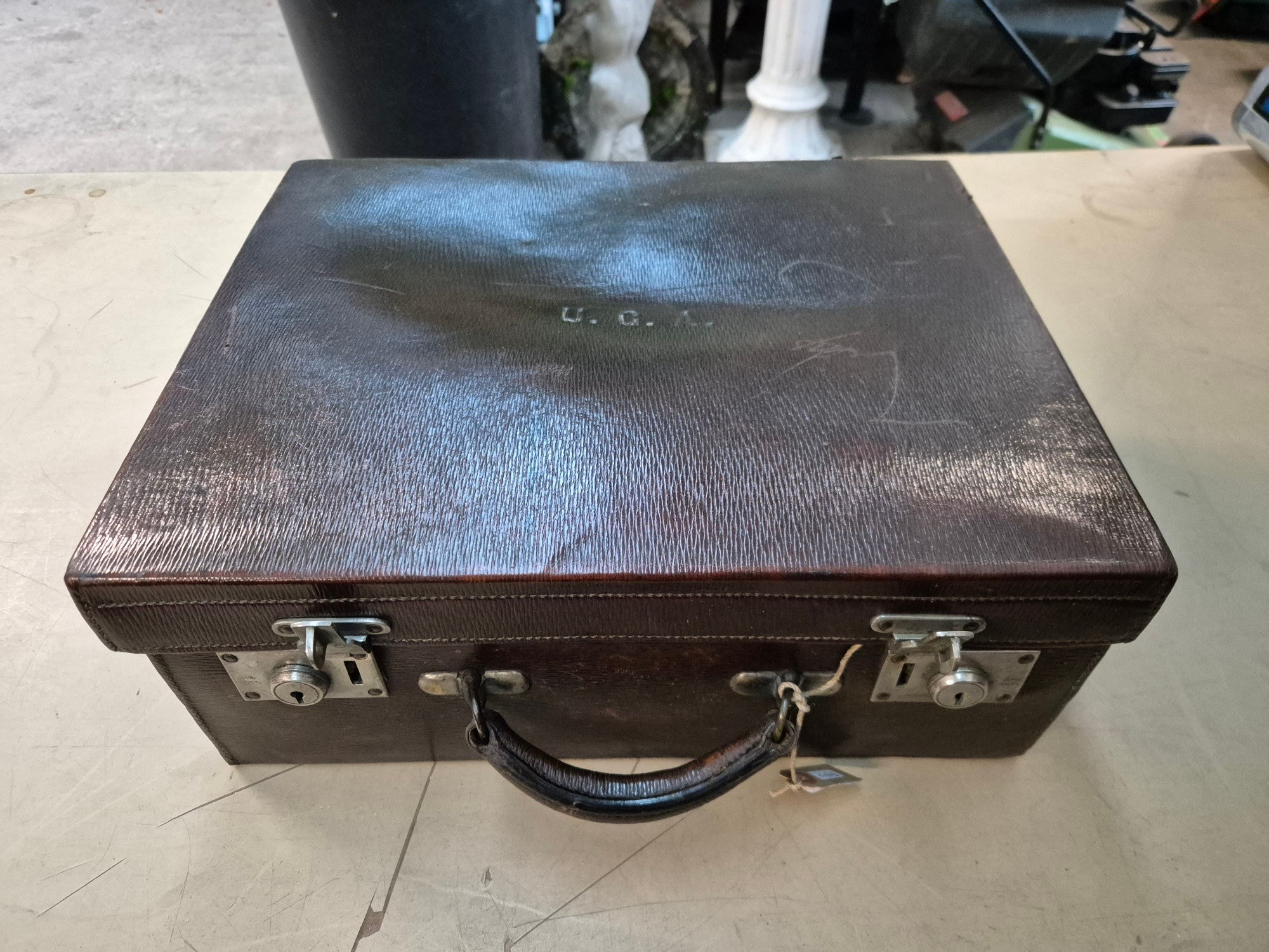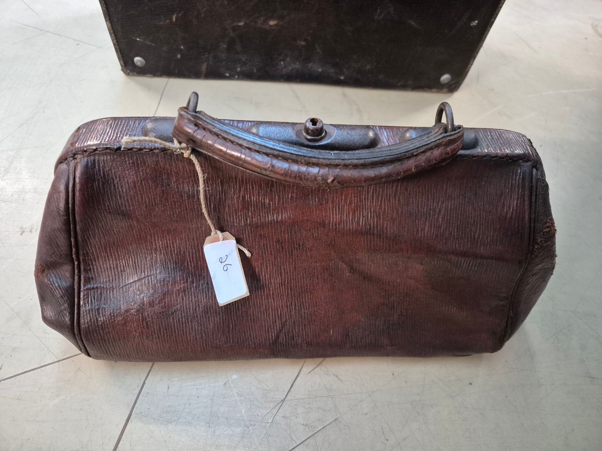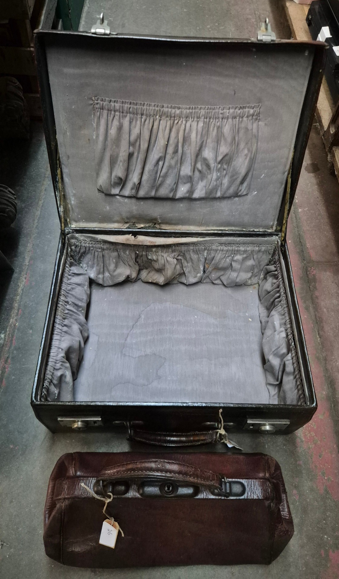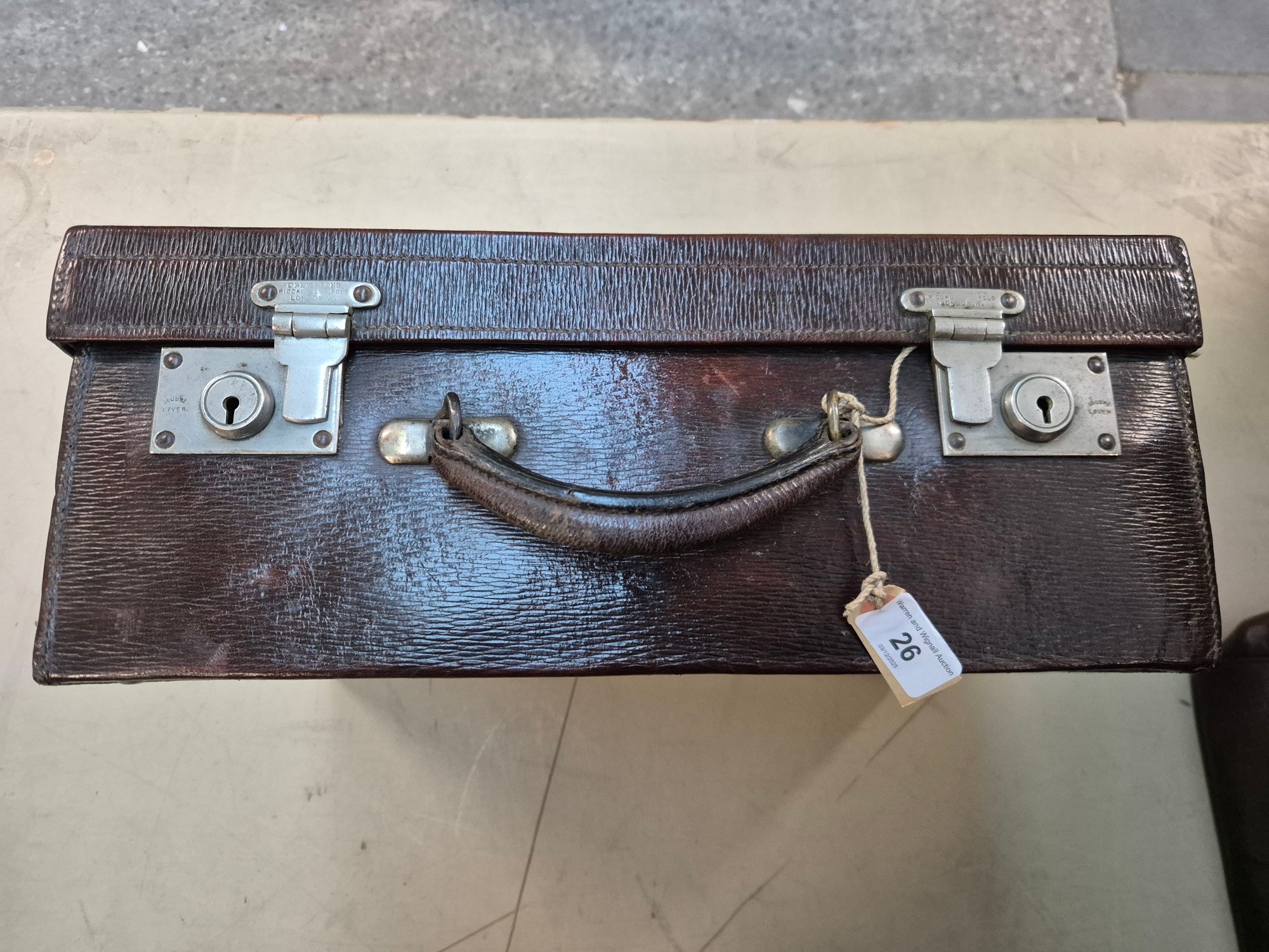 A brown leather case by Drew & Sons, 'to the Royal Family', and a small Gladstone bag