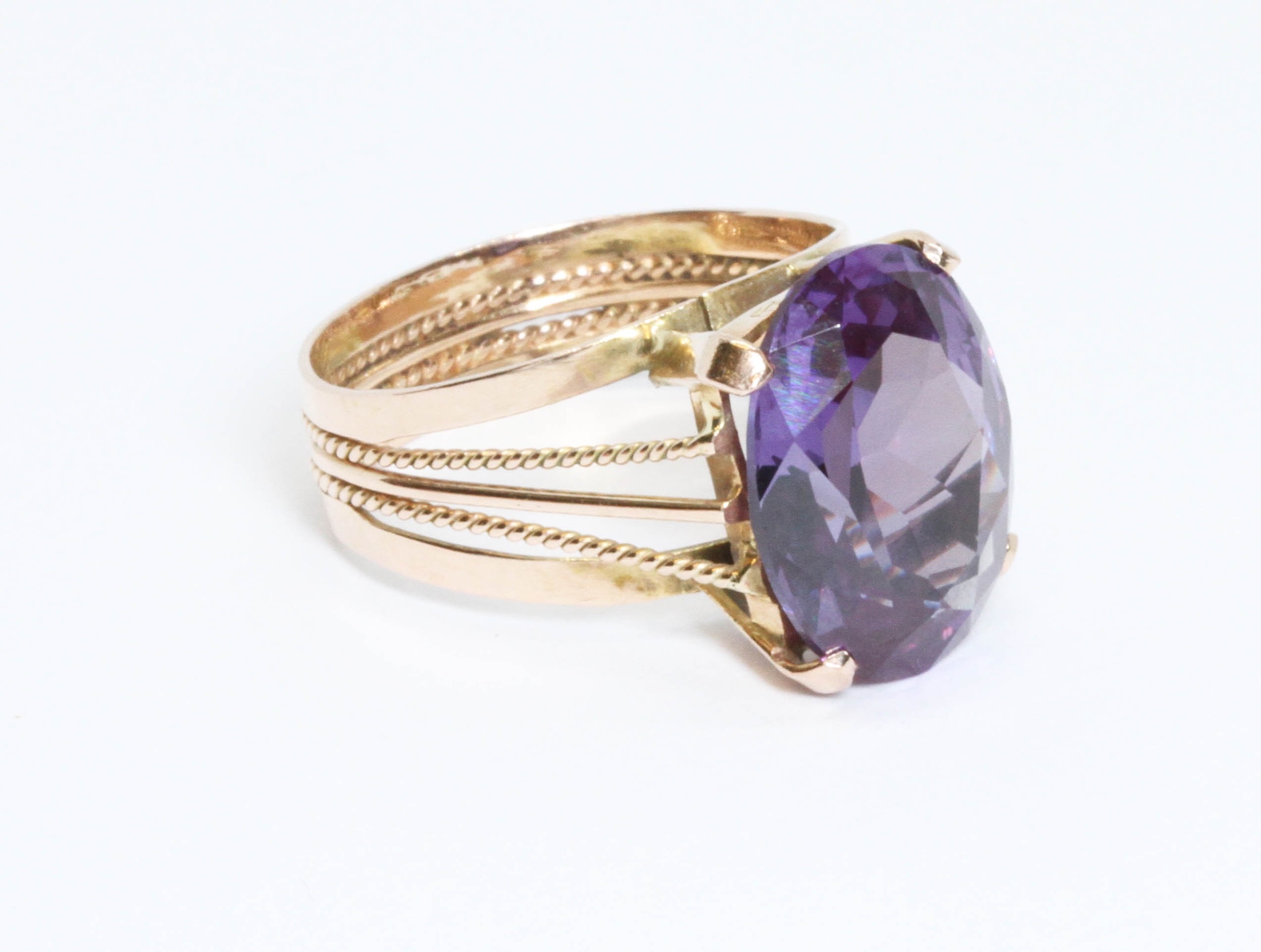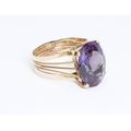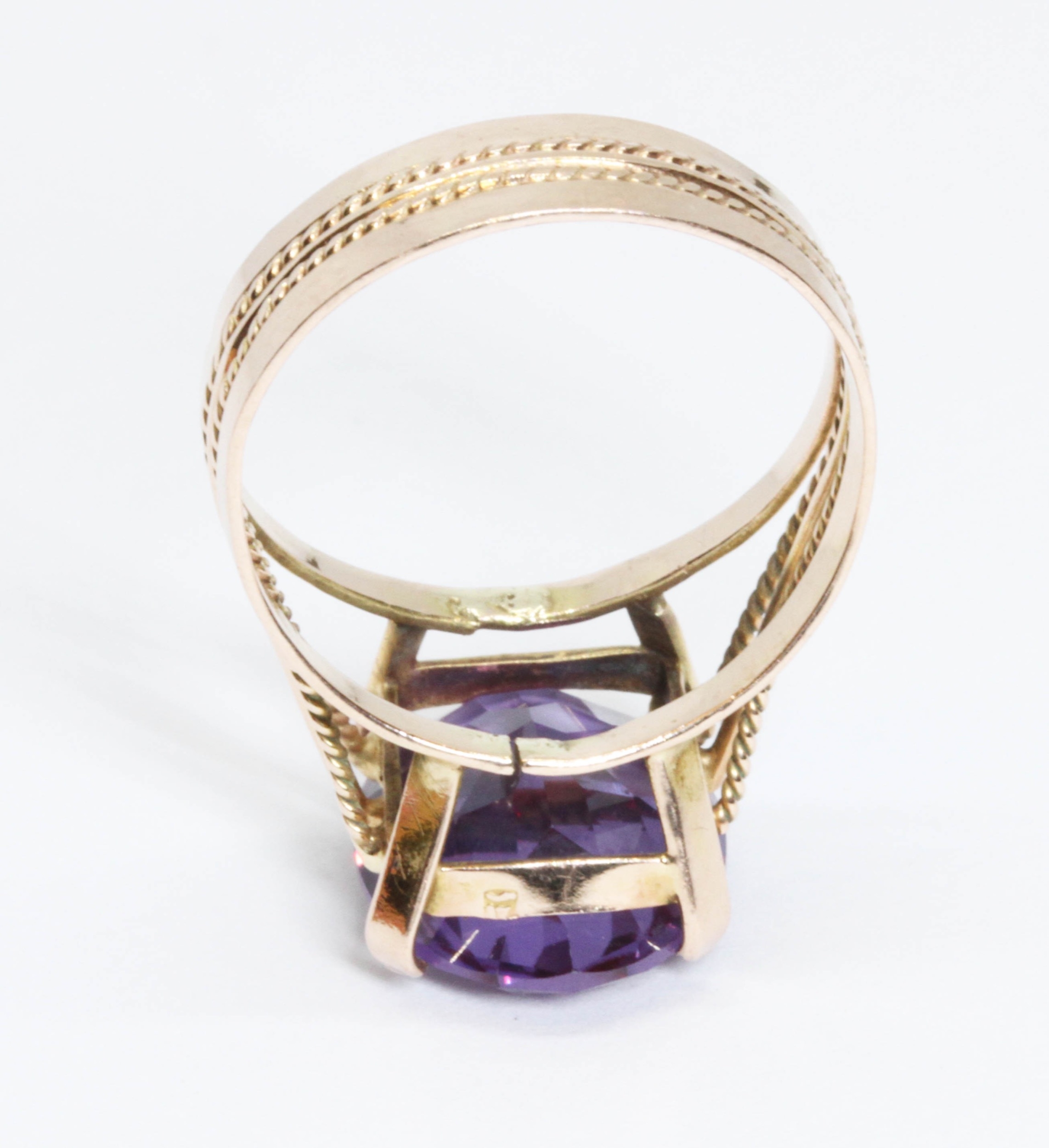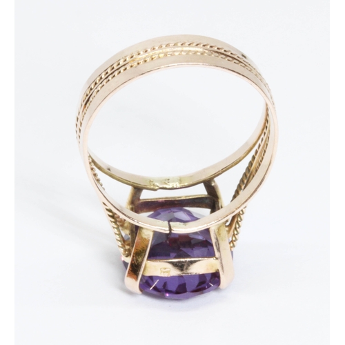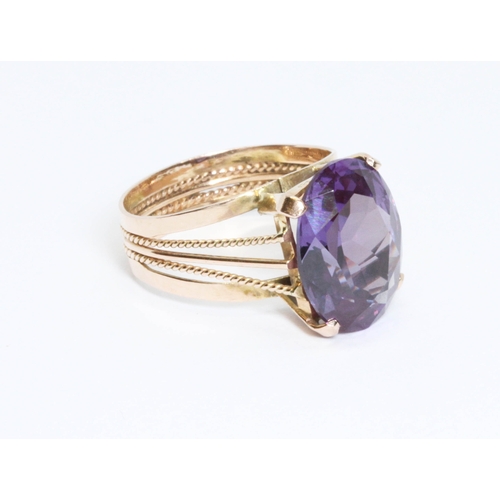 A synthetic purple sapphire ring, Egyptian 18ct gold marks, gross weight 5.4g, size R.