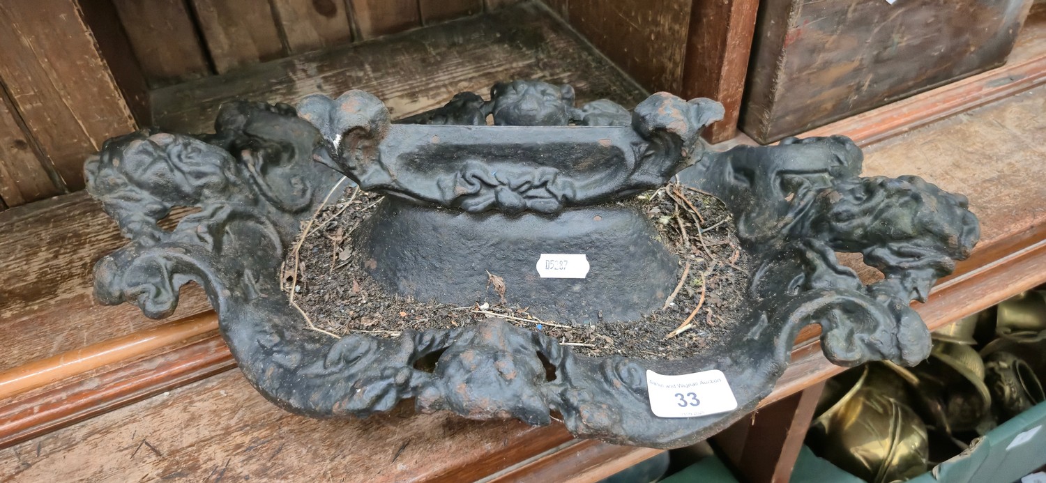 A cast metal foot scraper