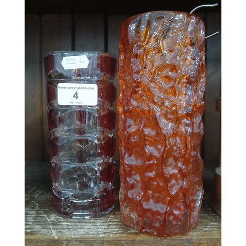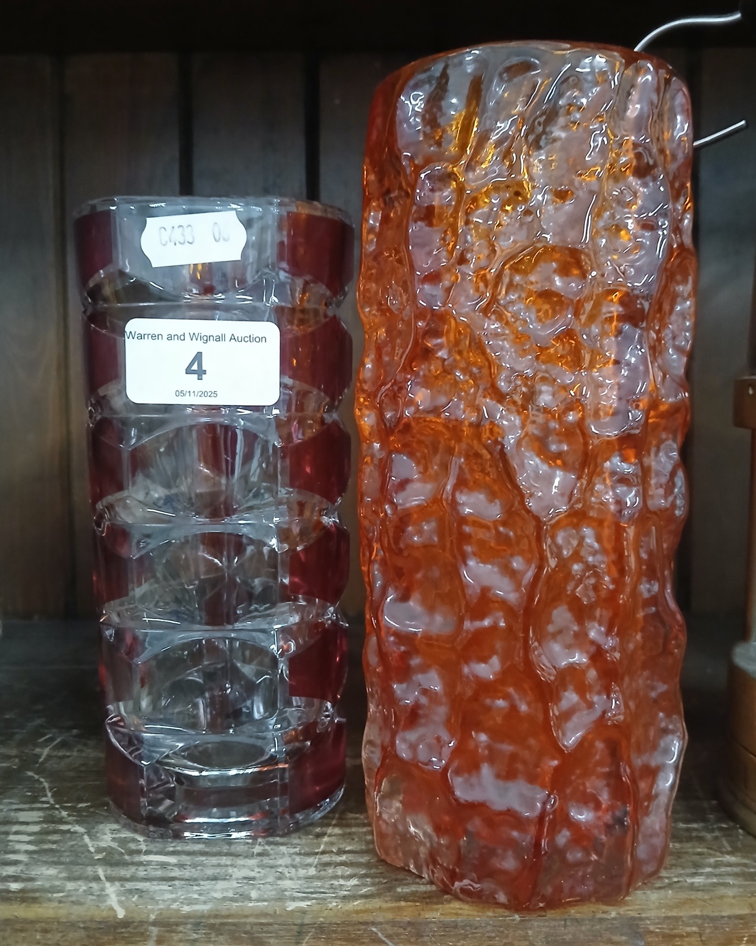 A Whitefriars tangerine bark vase, height 19.5cm and another.