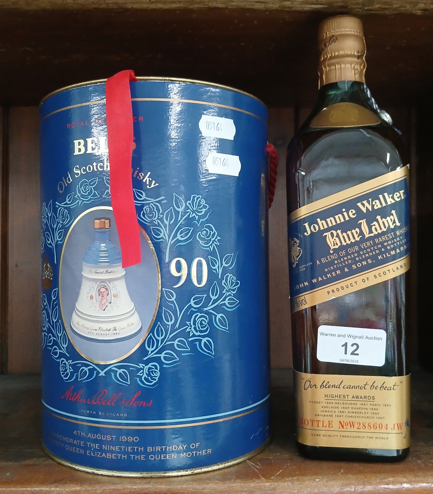 Note:- Johnnie Walker Blue Label - 70cl, Bell's Wade decanter 1990 - 75cl.