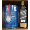 A bottle of Johnnie Walker Blue Label whisky and a Bell's Wade decanter 1990.