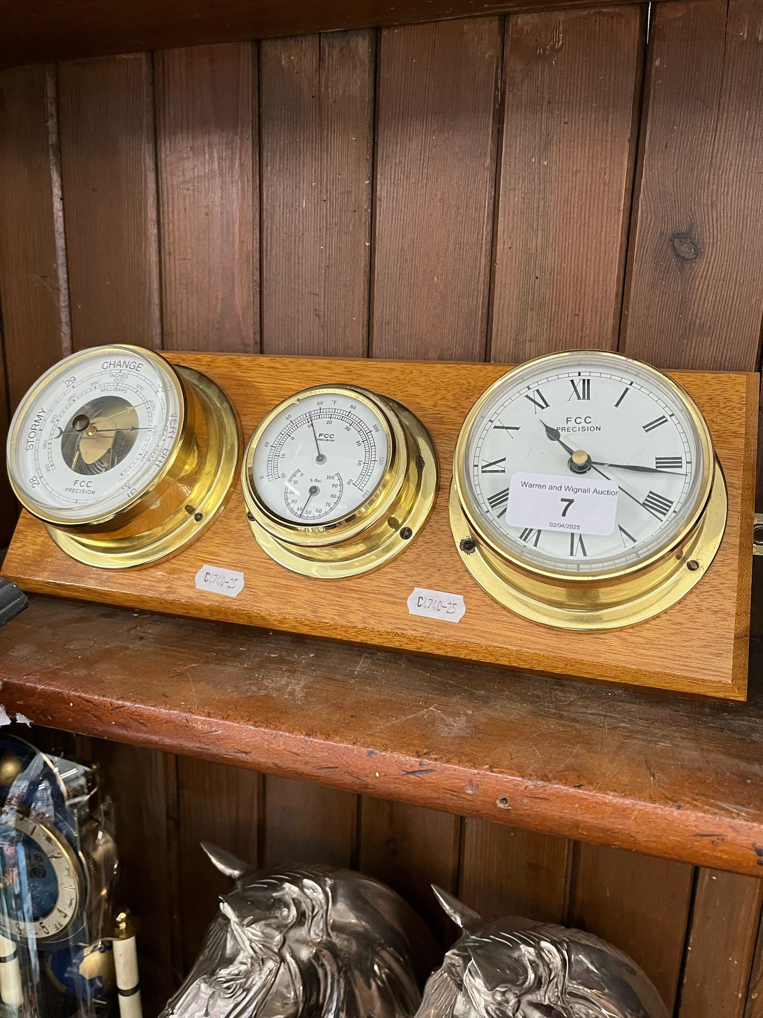 An FCC Precision clock, barometer and thermometer, mounted o...