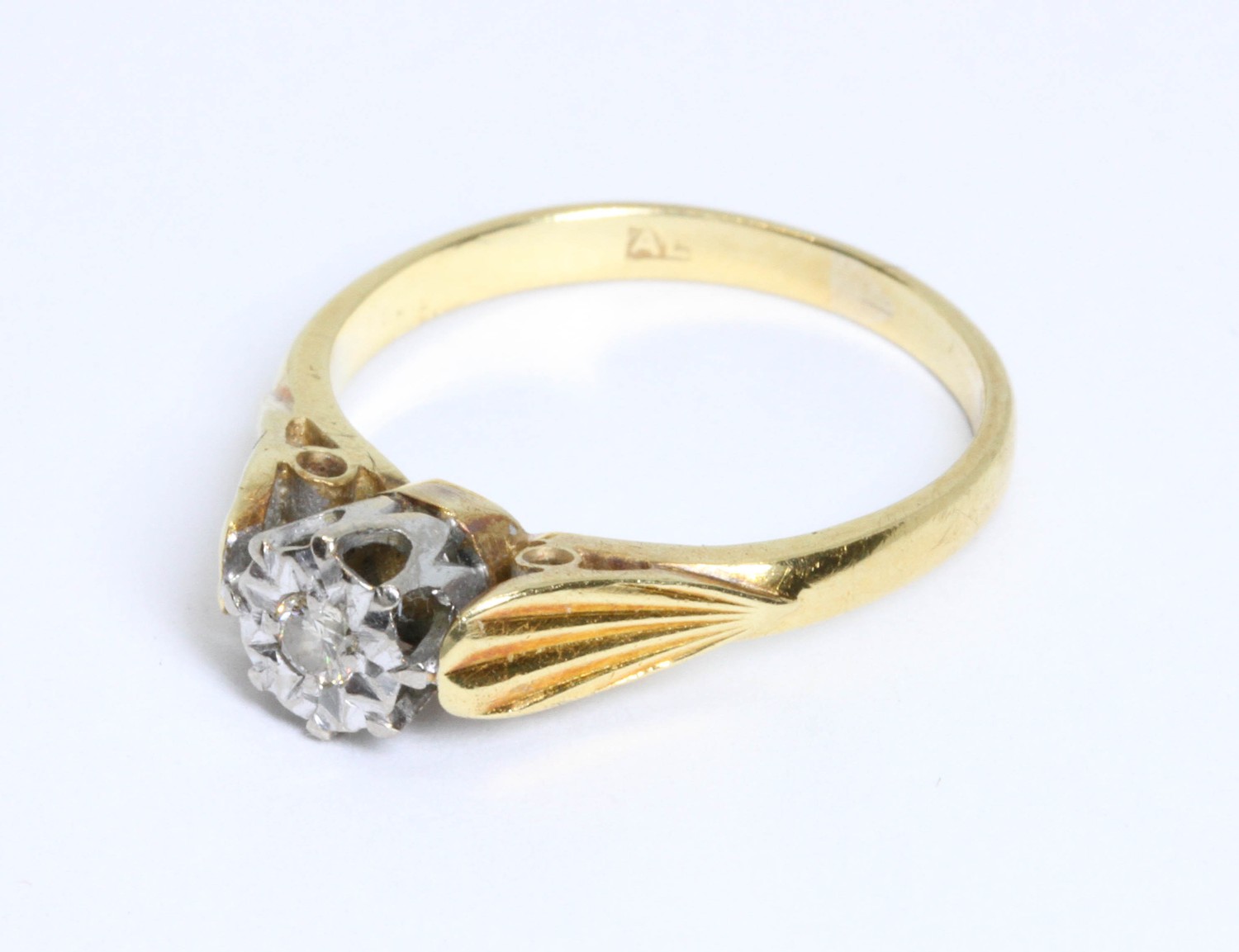 A hallmarked 18ct gold single stone diamond ring, sponsor 'AL', London 1977, gross weight 3.4g, size L.